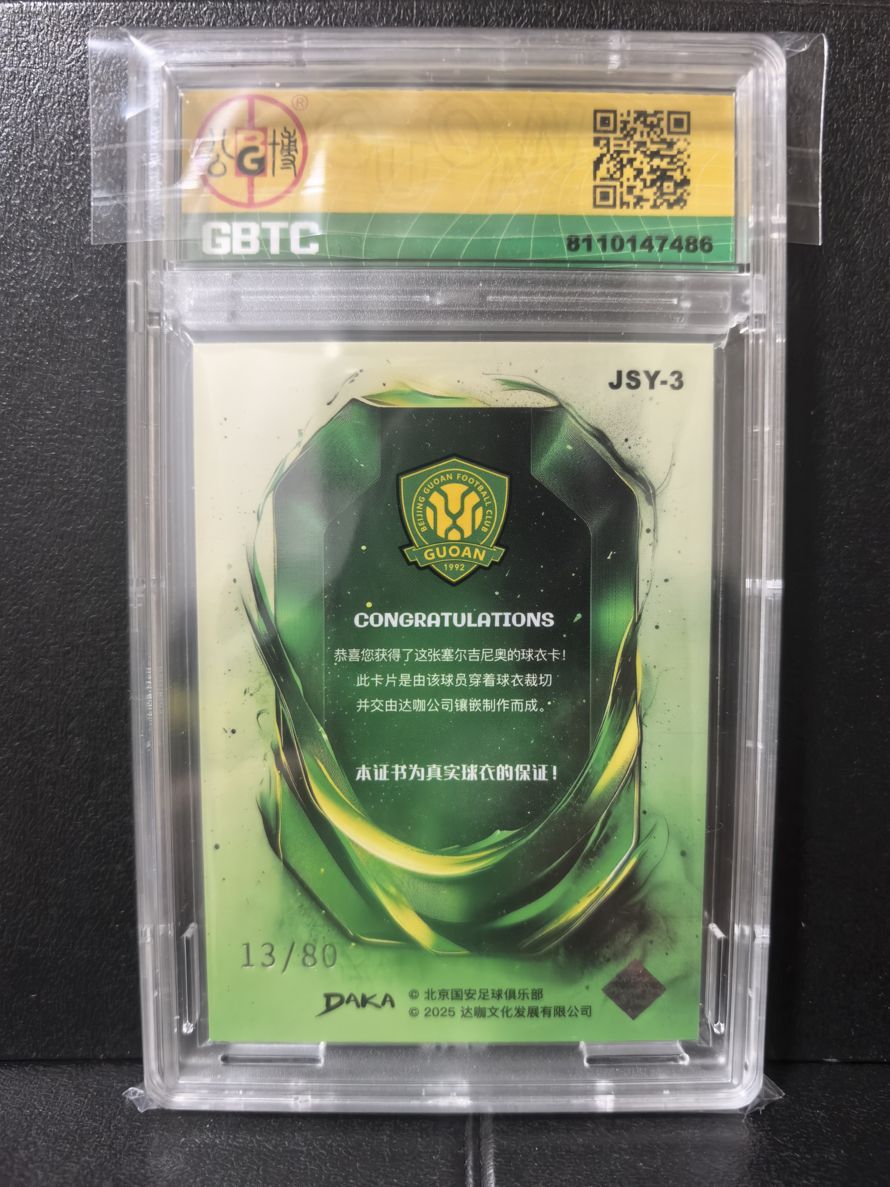2025 DAKA JERSEY-SILVER SAI ERJINIAO 2025 达咖 北京国安队盒 塞尔吉尼奥 球衣卡 13/80编 公博9.5分