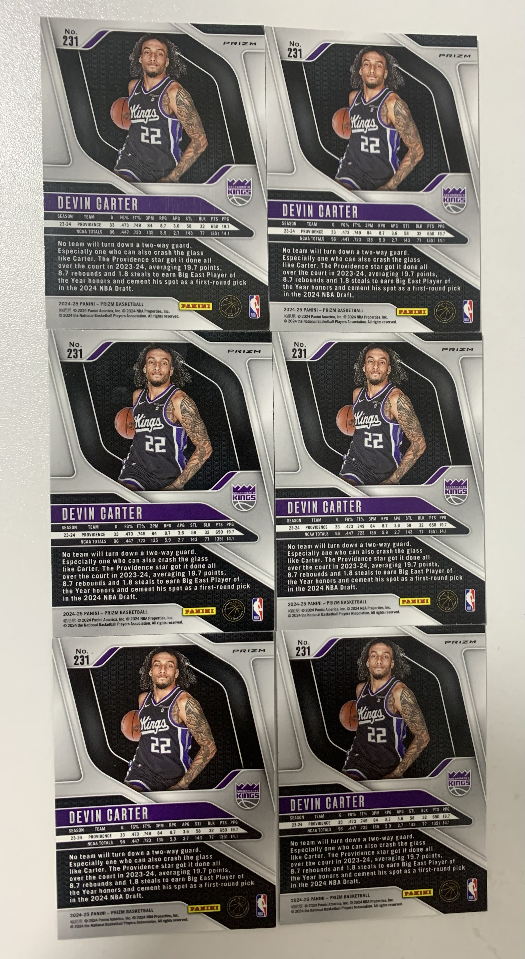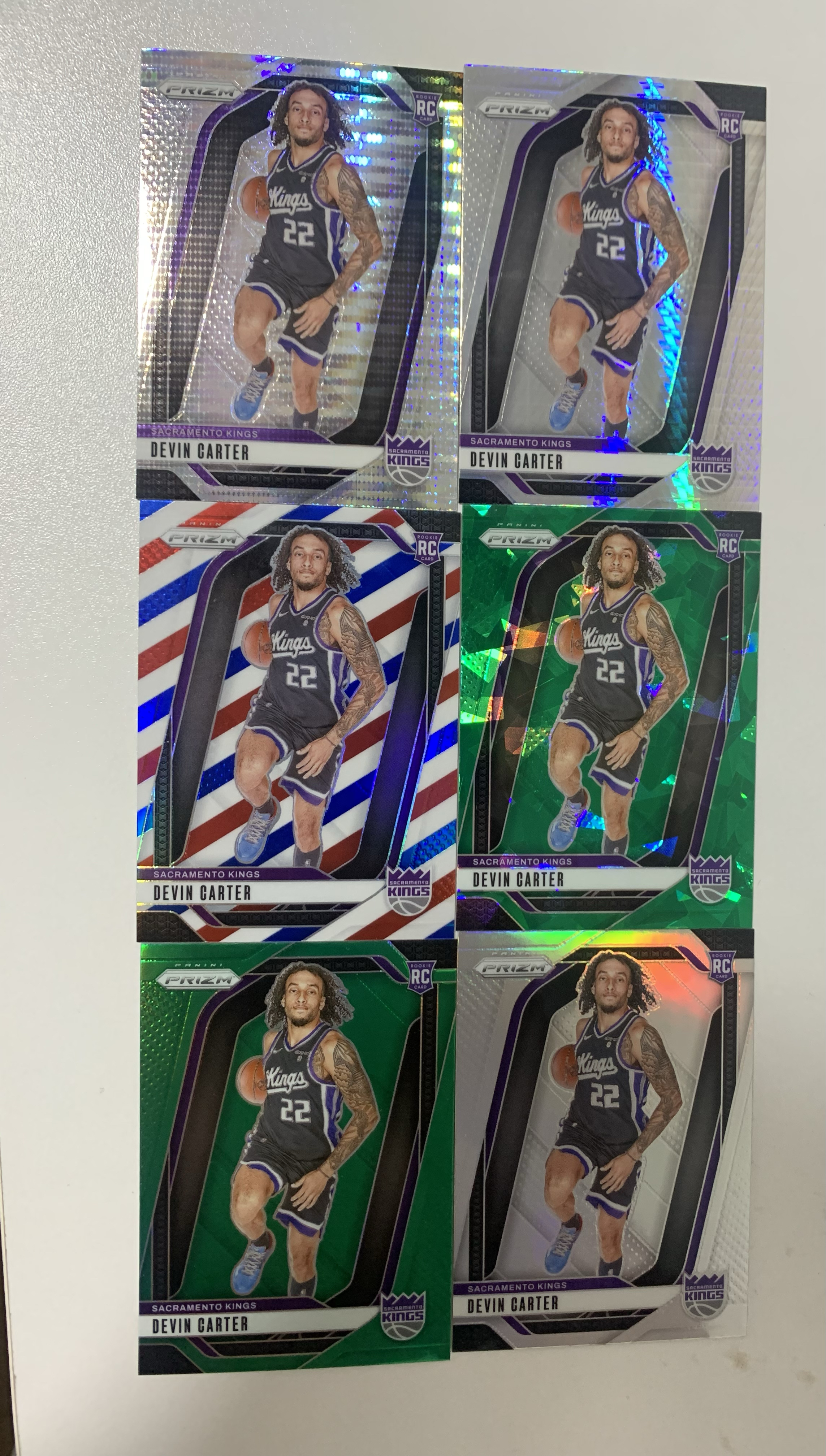 2024-25 Panini Prizm 国王 新秀RC Devin Carter 德文卡特 折射 龙鳞折 迪斯科折 绿碎冰 三色折 银折 绿折 专收必备 彩虹套 lot6张 空白