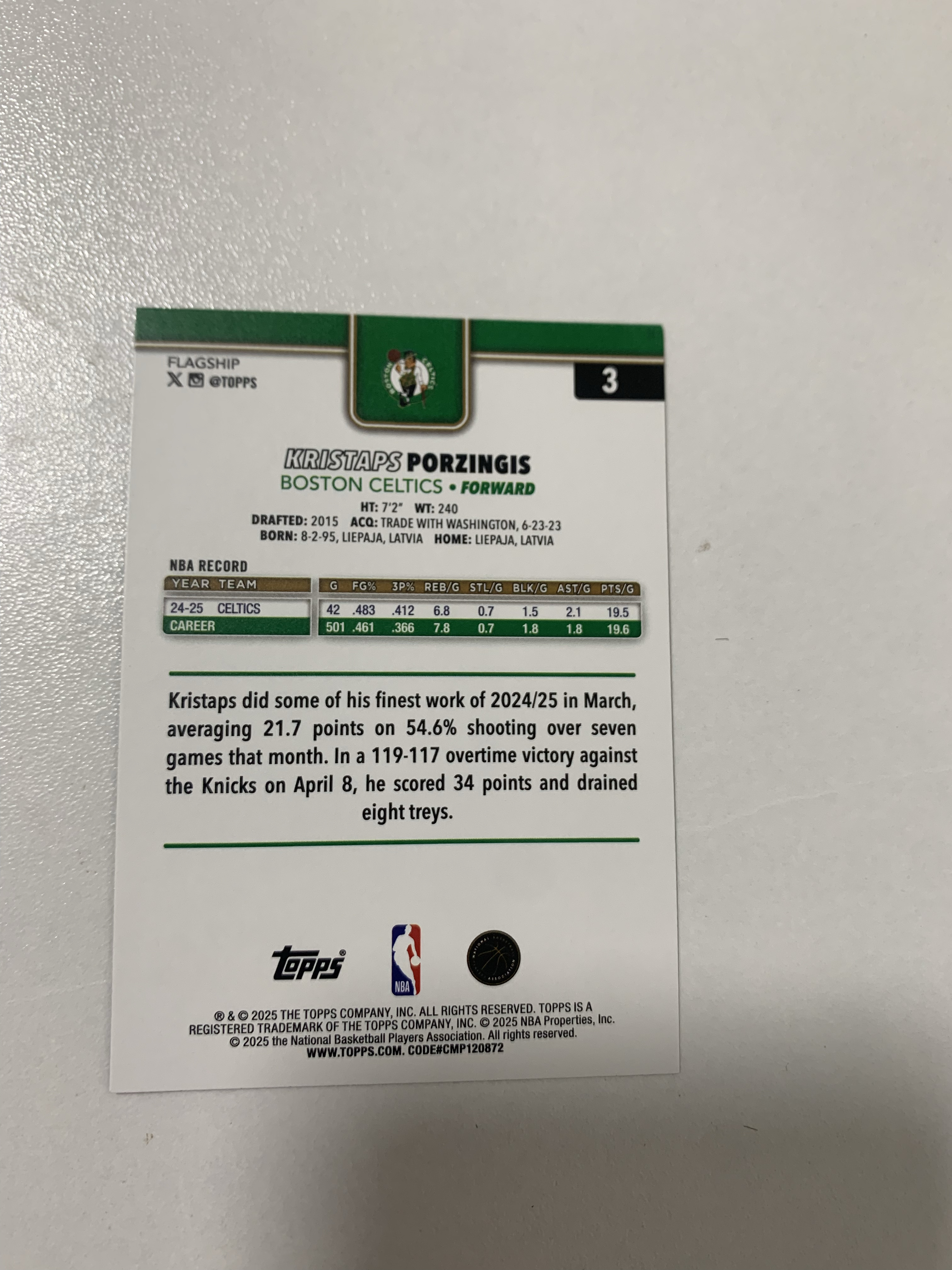 2025 topps 凯尔特人 Kristaps Porzingis 波尔津吉斯 波神 93/250编 紫折 专收必备 空白