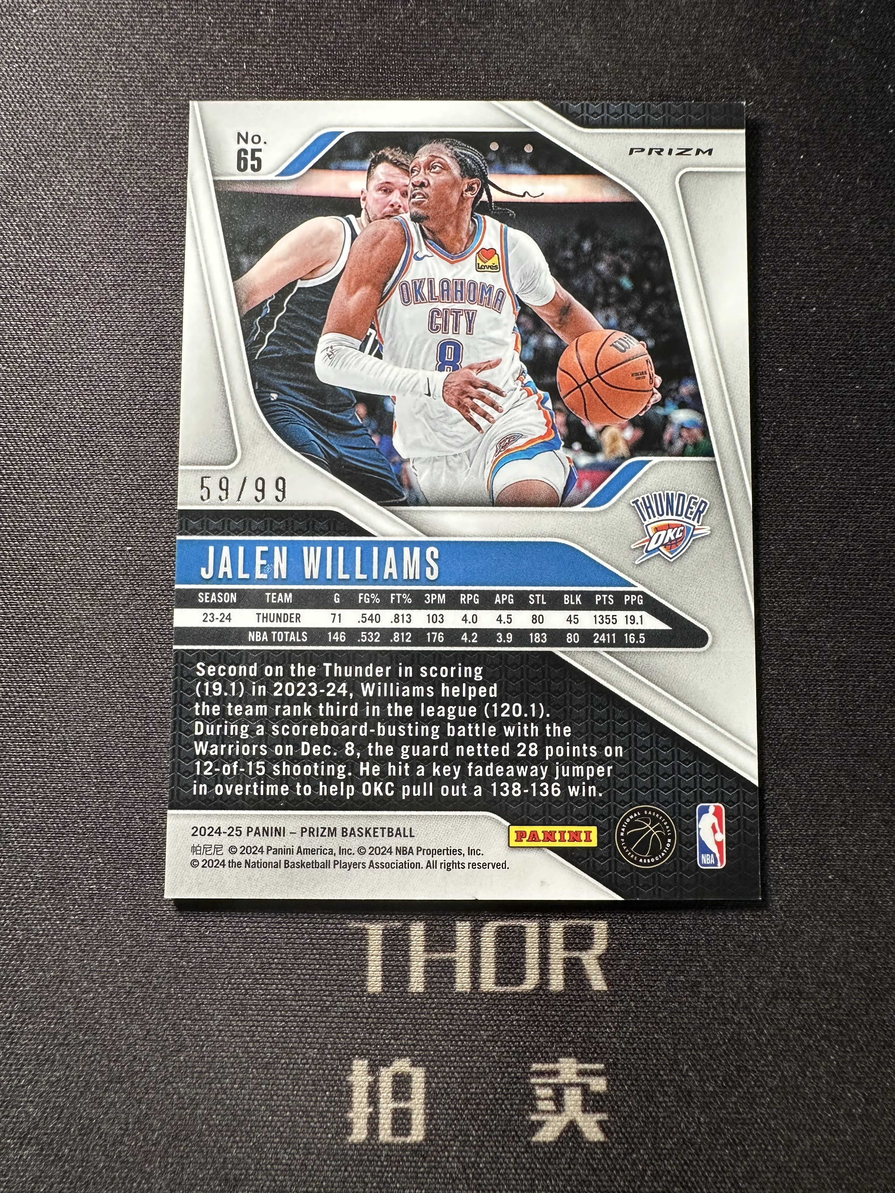 【Thor拍卖】2024-25 Panini Prizm Jalen Williams PZ 雷霆 杰伦 威廉姆斯 老八 紫折 99编【校长】20