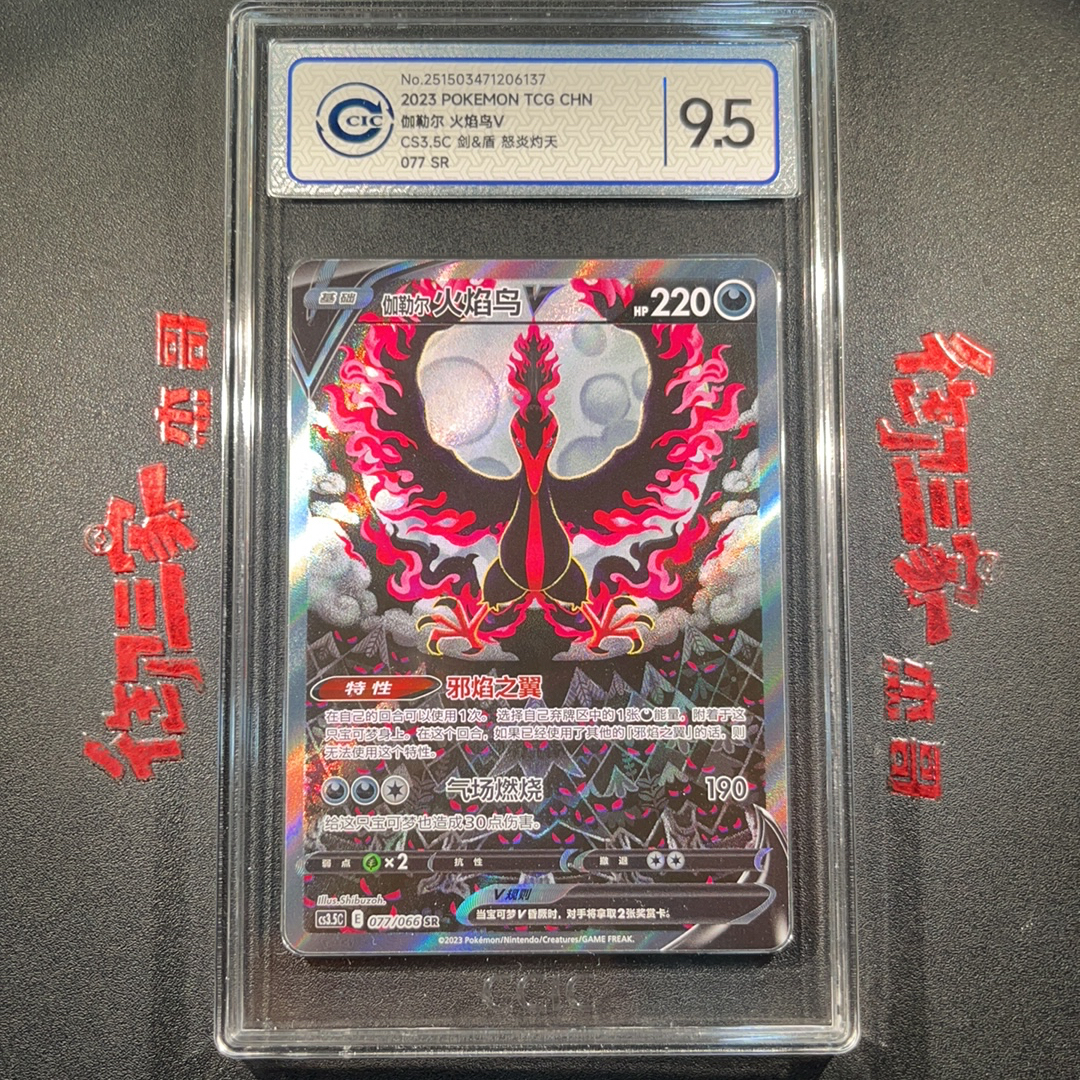 2023 Pokemon TCG 剑&盾 强化包 怒炎灼天 PTCG 宝可梦 简中 伽勒尔火焰鸟 V 手绘 077/066 SR CCIC 9.5分 卡品如图 chs 【御三家杰哥】966x