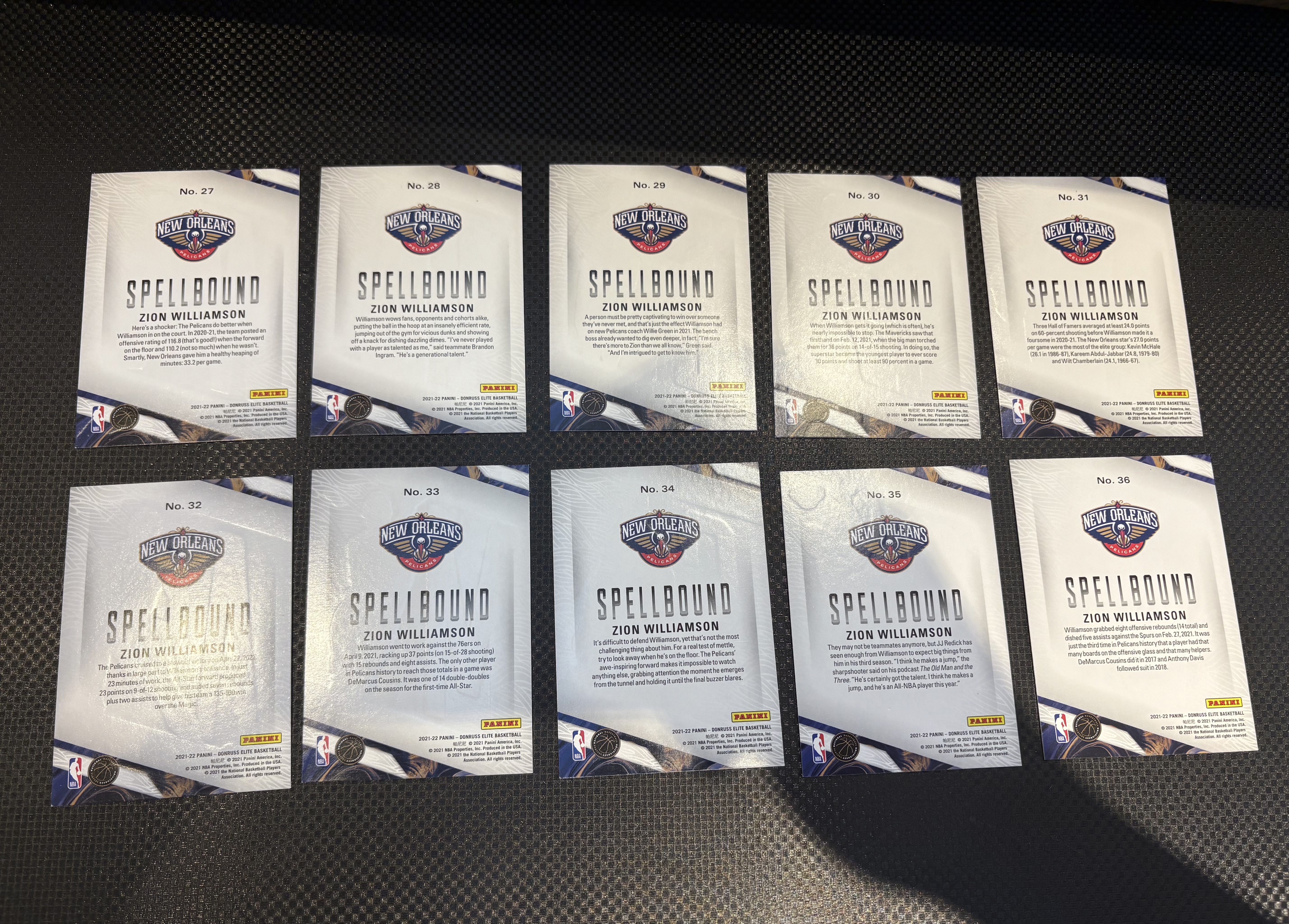 2021-22 Panini Elite Zion Williamson 锡安 威廉姆斯 精英 字母 特卡 全套 10张 齐全 鹈鹕 状元 胖虎 WILLIAMSON lot 打包