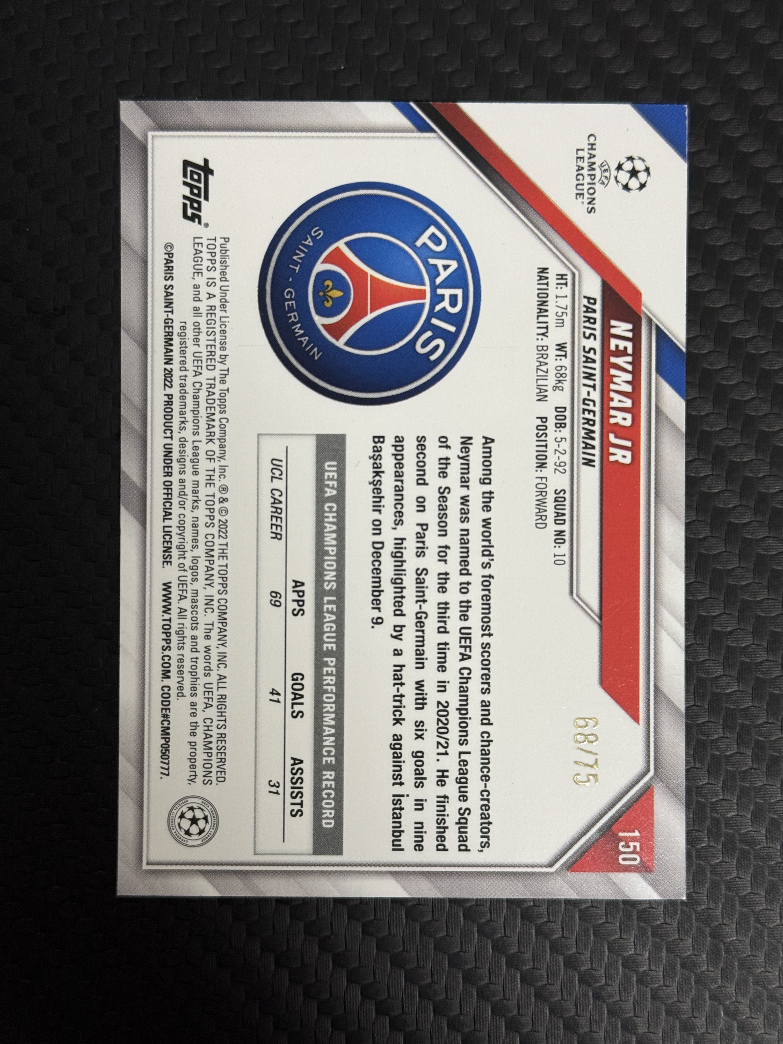 2021-22 Topps Ucc Neymar Jr. 欧战 内马尔 大巴黎 巴西 巴萨 桑巴舞者 68/75编 base 纸卡 虎纹折 卡品如图 吴总