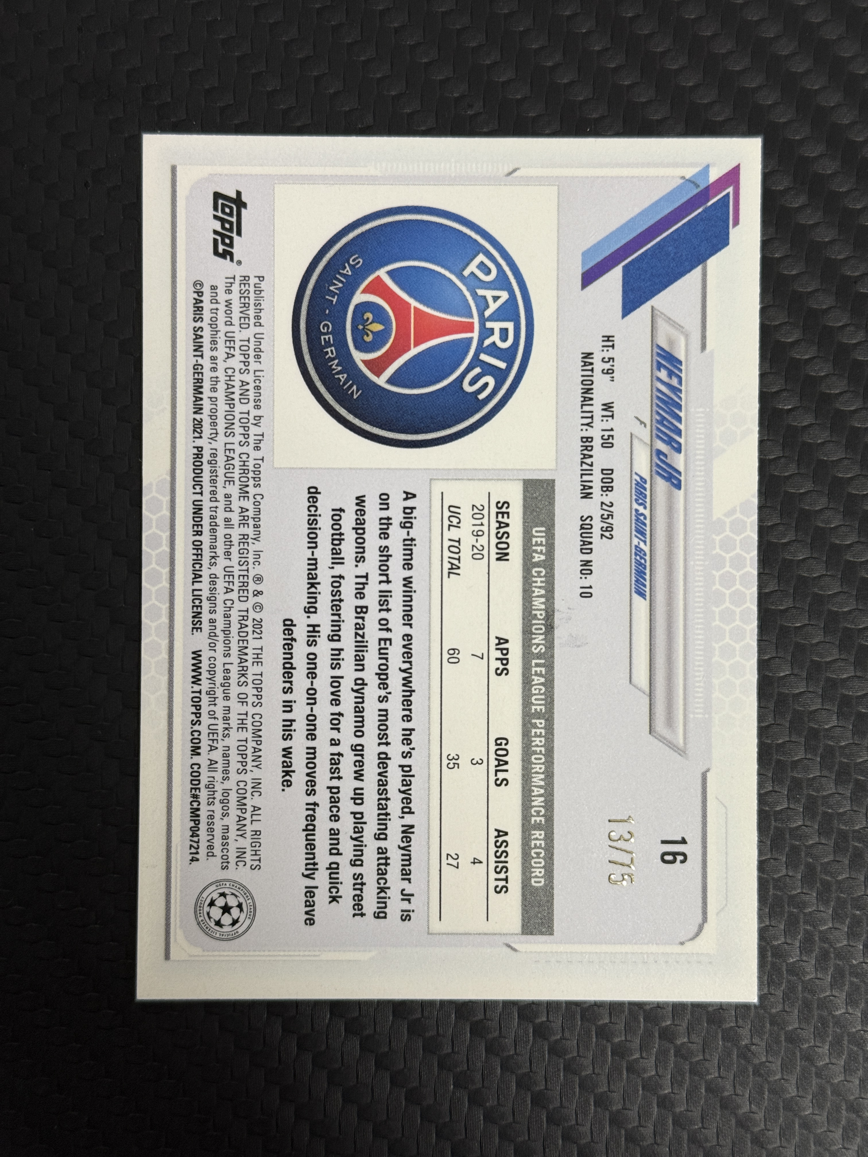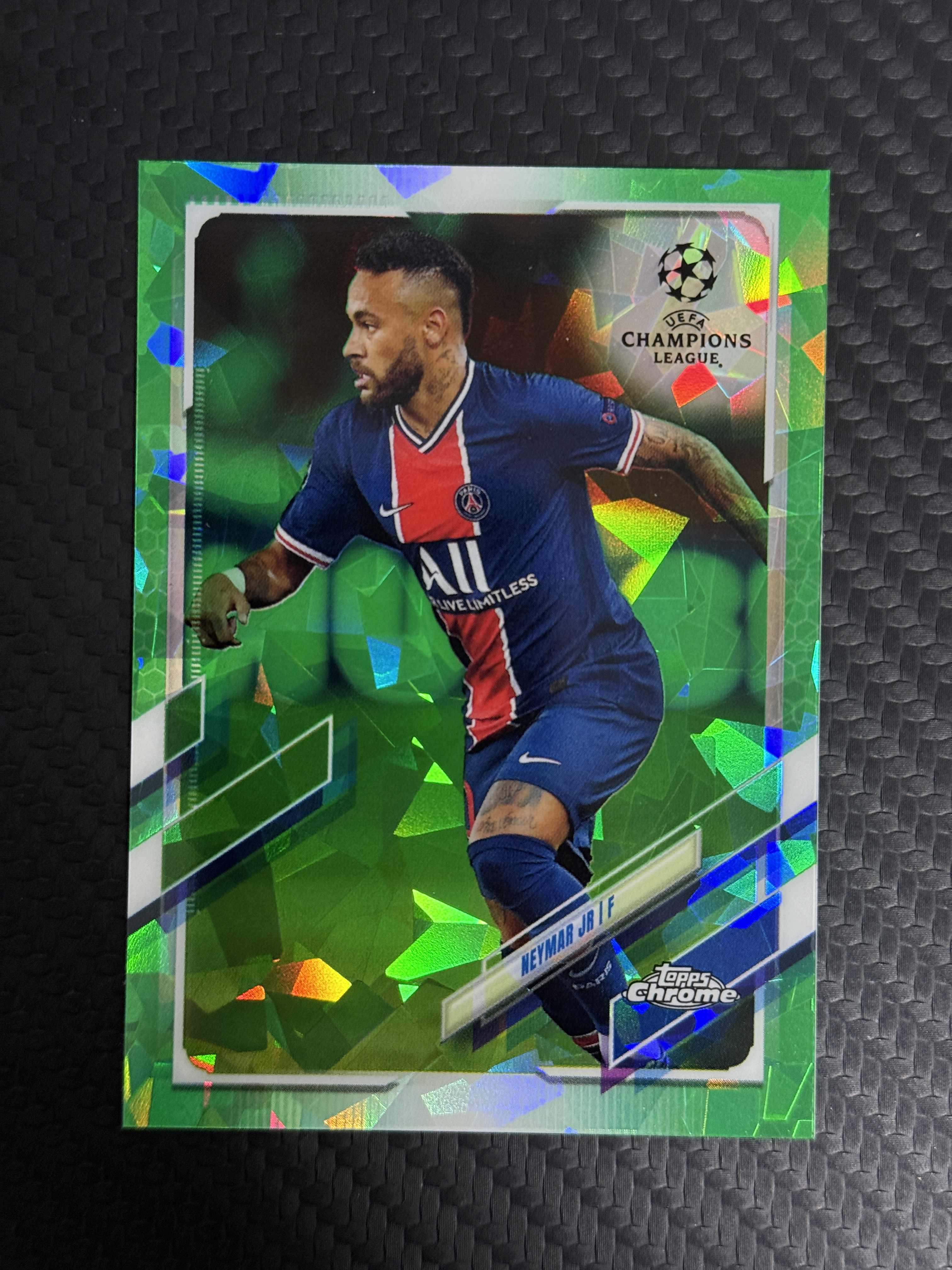 2021 Topps Chrome Neymar Jr. 【包来拍卖】欧冠蓝宝石 巴西 巴黎圣日耳曼 前锋 内马尔JR 13/75编 绿碎冰折 折射 卡品如图 吴总