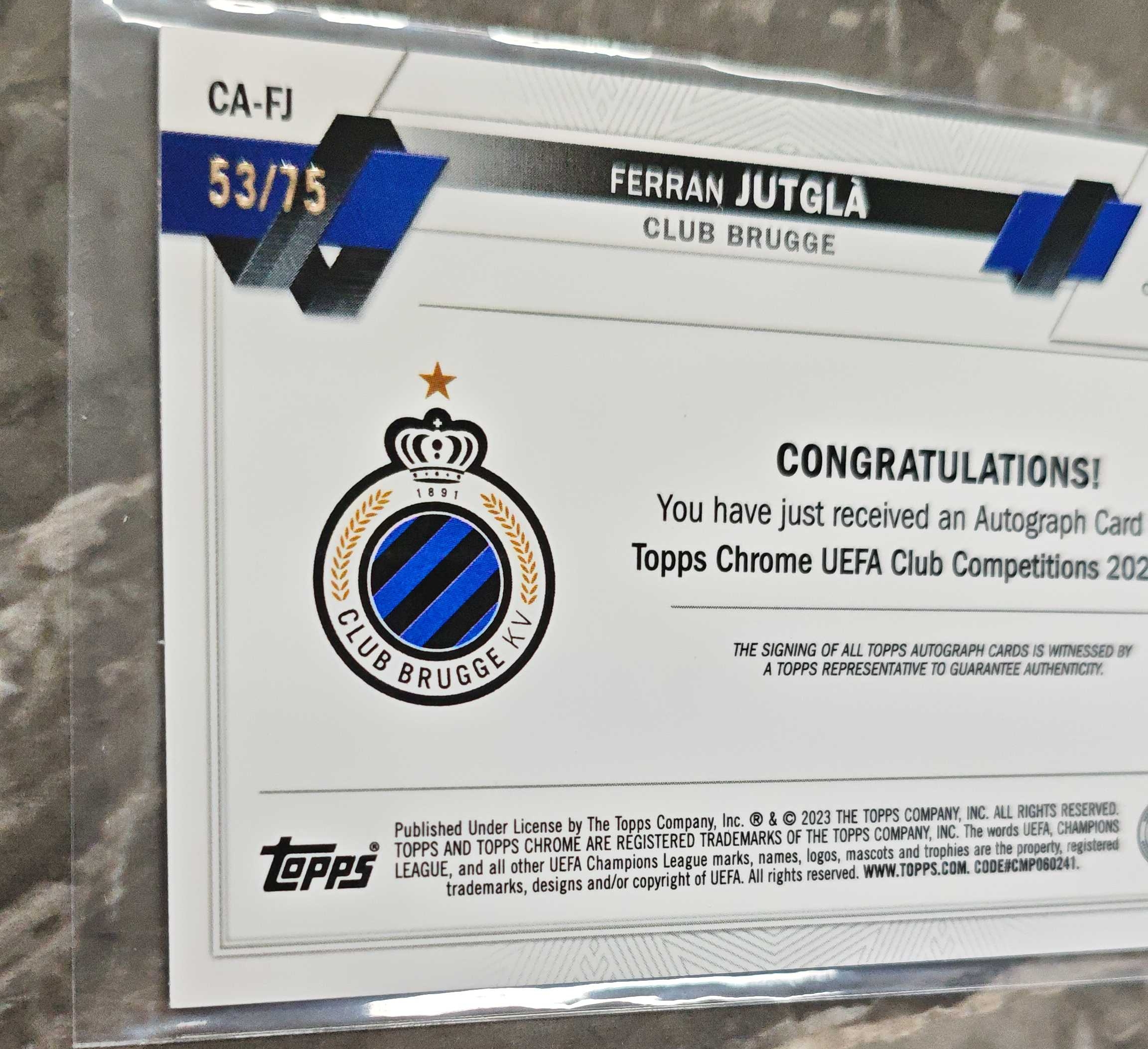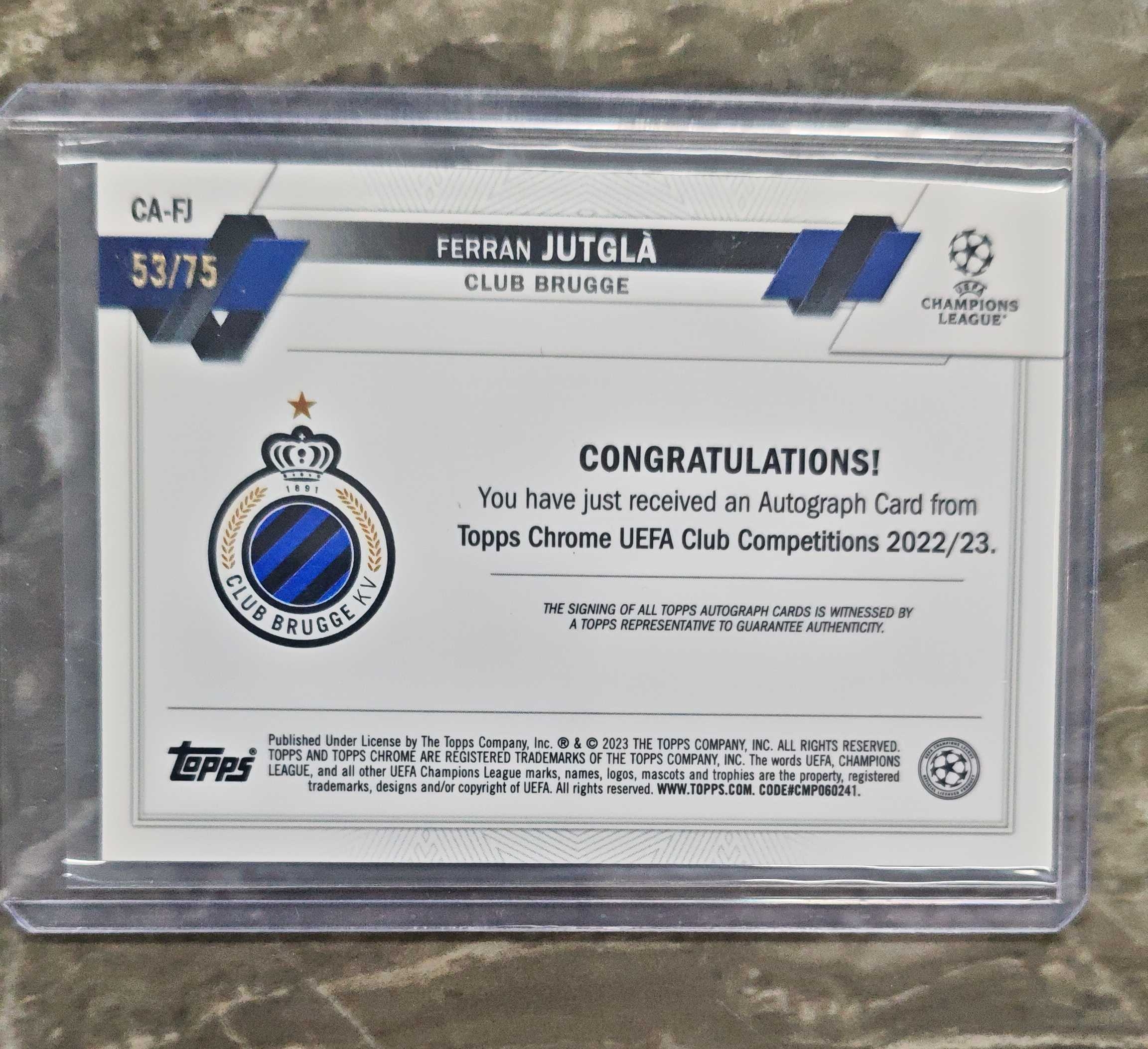 2022-23 Topps Chrome Ferran Jutgla RC 欧冠TC 费兰 朱特格拉 布鲁日 签字 蓝波纹折 53/75编 墨迹如图 不保卡品 如图 不退不换 凑套必备 V001