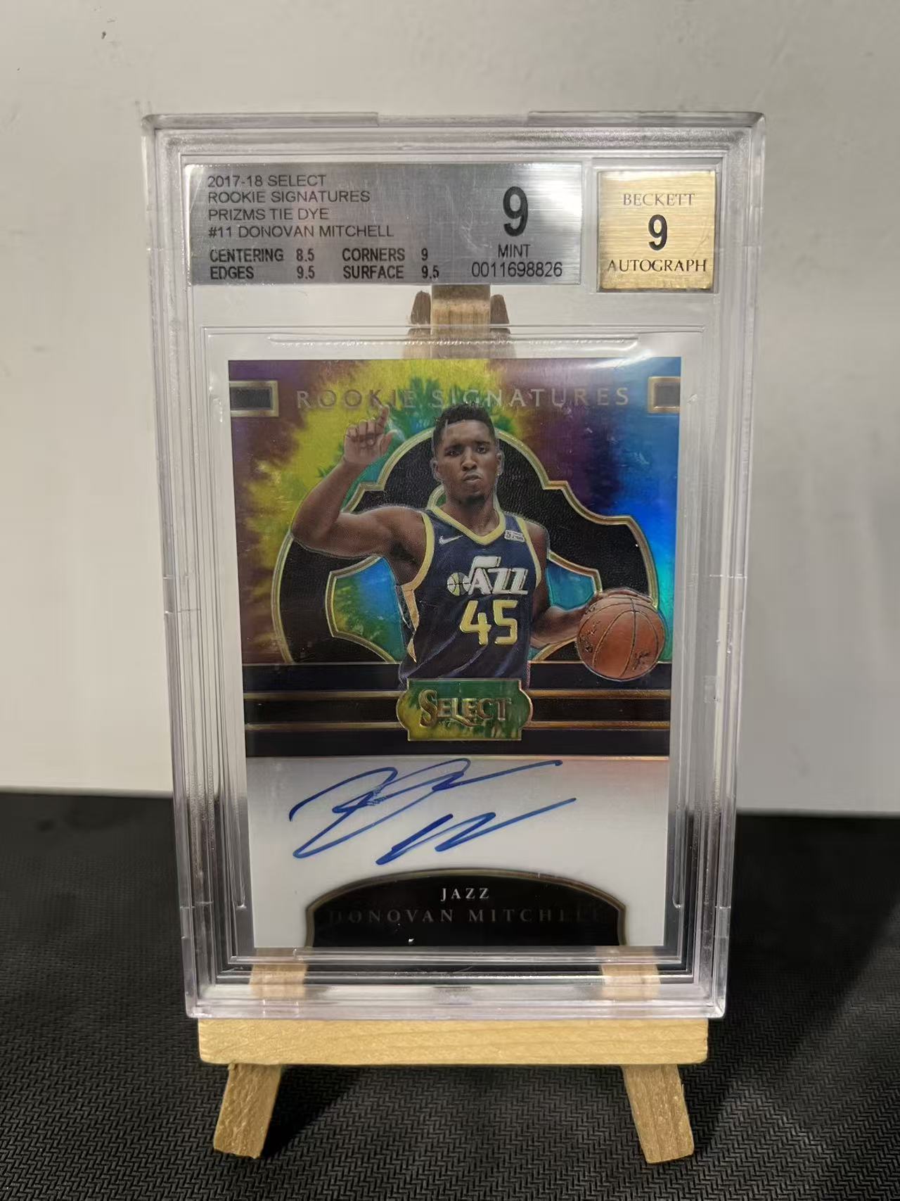 2017-18 Panini Select Donovan Mitchell RC 【FV拍卖】多诺万 米切尔 爵士 新秀 骑士球星 扎染折签 签字 卡签 25编 BGS9+9 评级壳瑕疵如图 金标