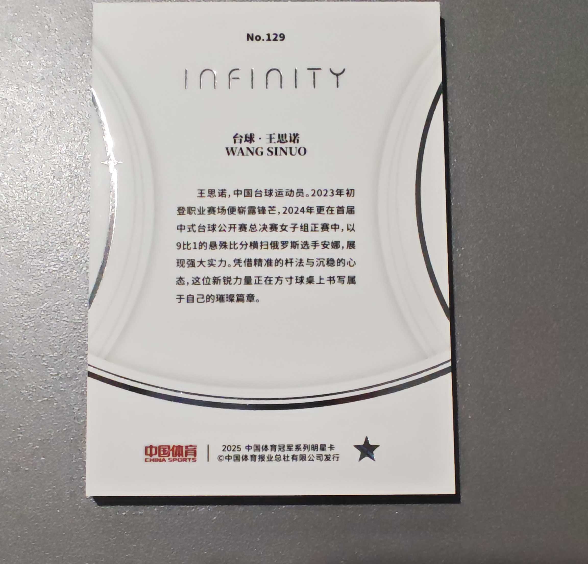 2025 Qica Infinity 奇卡 中国体育 无限系列 台球 王思诺 FS 未来之星 base 15/49编 卡品如图(问号)