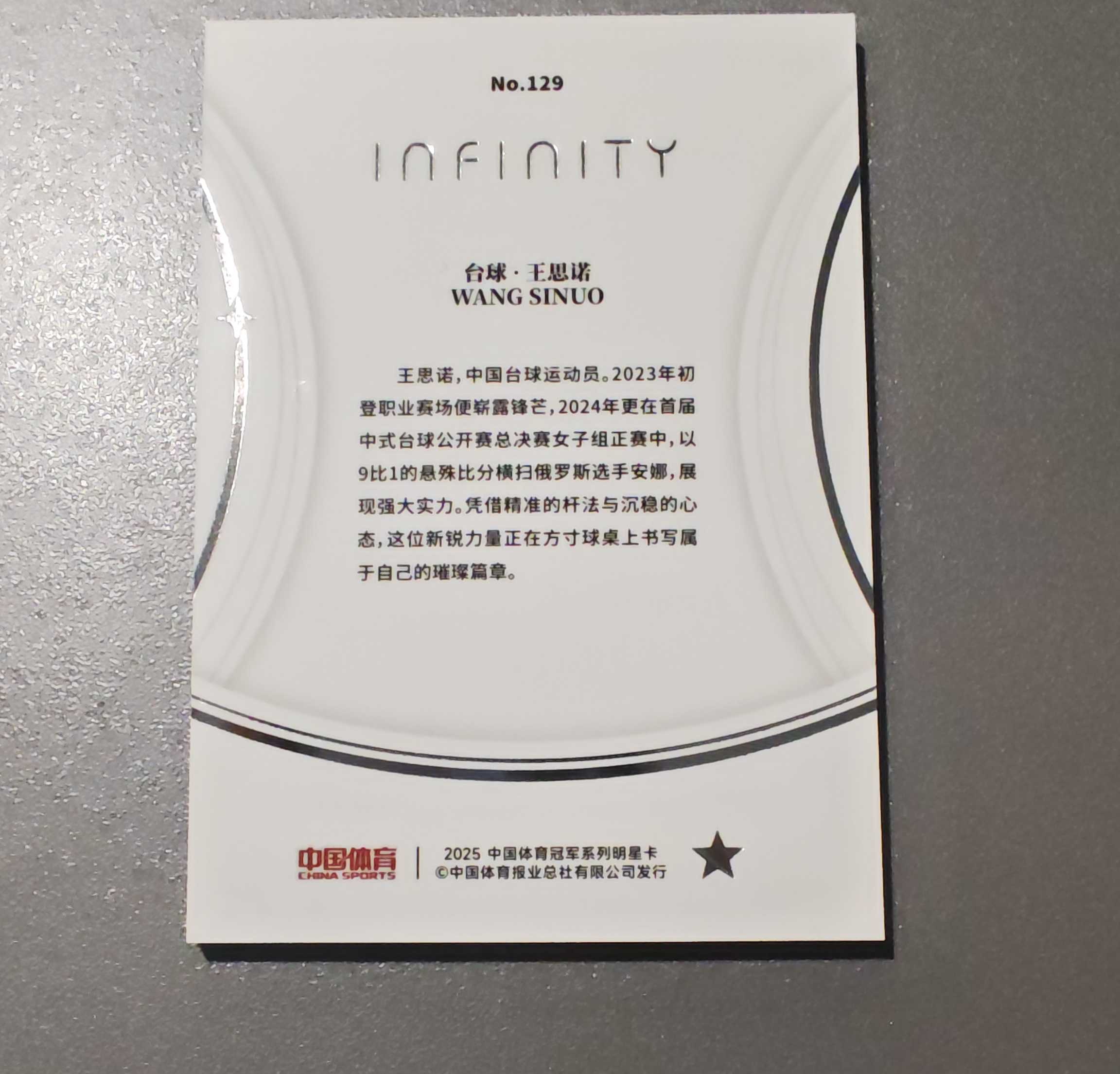2025 Qica Infinity 奇卡 中国体育 无限系列 台球 王思诺 FS 未来之星 base 18/49编 卡品如图(问号)