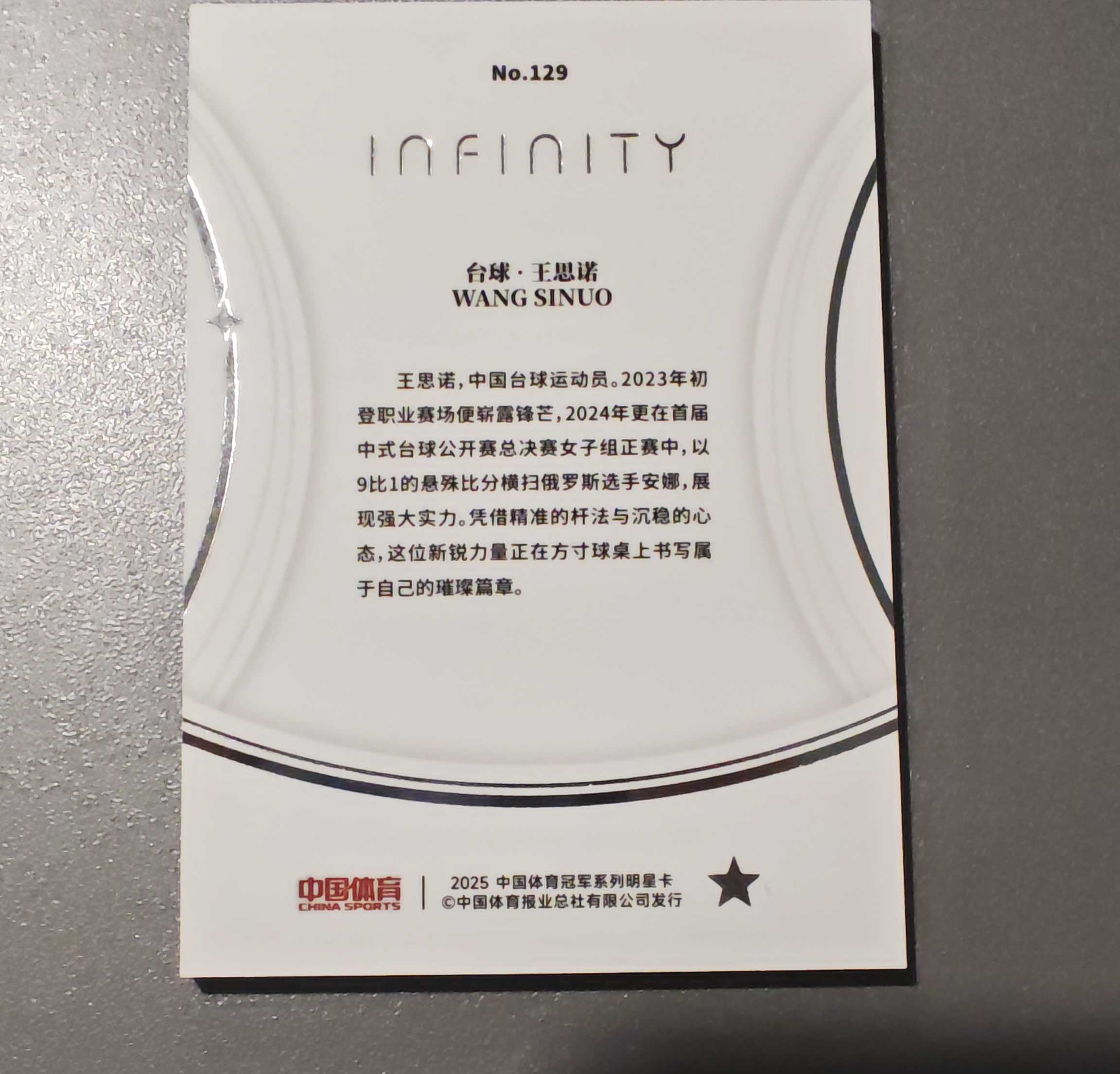 2025 Qica Infinity 奇卡 中国体育 无限系列 台球 王思诺 FS 未来之星 base 19/49编 卡品如图(问号)