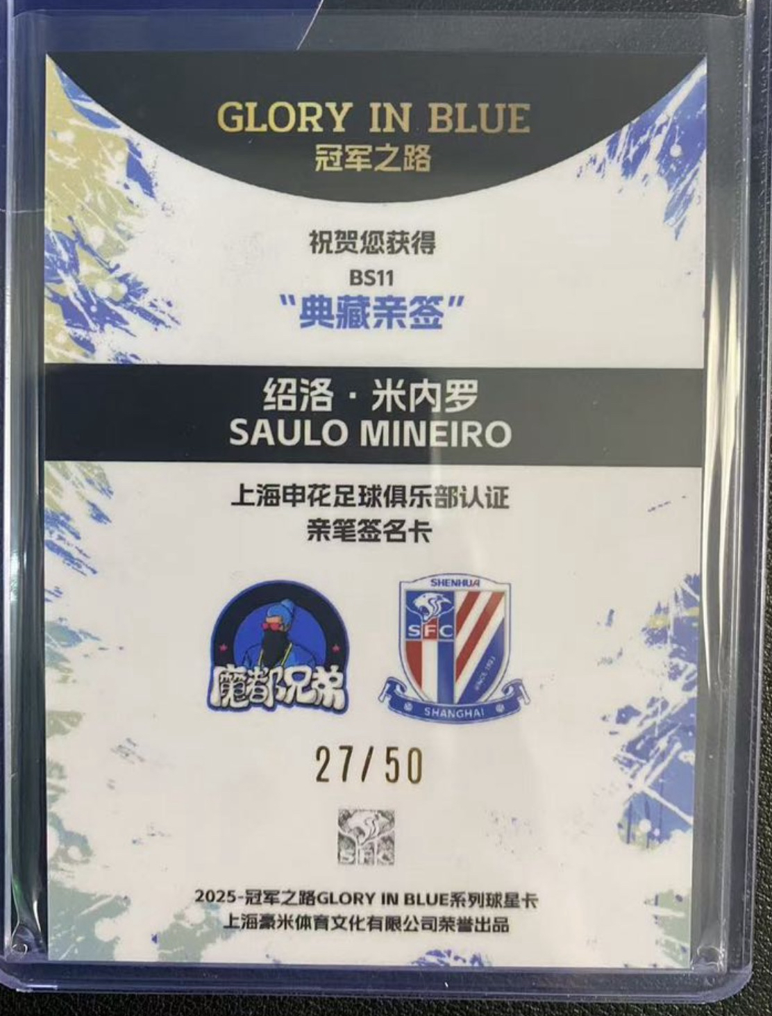 2025 毫米体育 魔都兄弟 米内罗 签字 卡签 典藏签 冠军之路 上海申花 27/50编 蓝折 折射