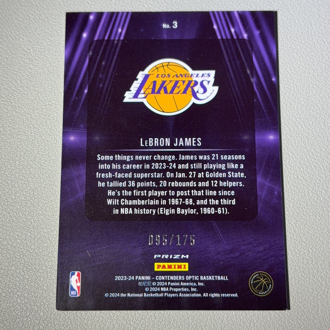 2023-24 Panini Contenders Optic LeBron James 湖人 勒布朗 詹姆斯 VIPS 通道 球票 base 红碎冰折 折射 175编 会员 实卡精美 收藏必备 专收
