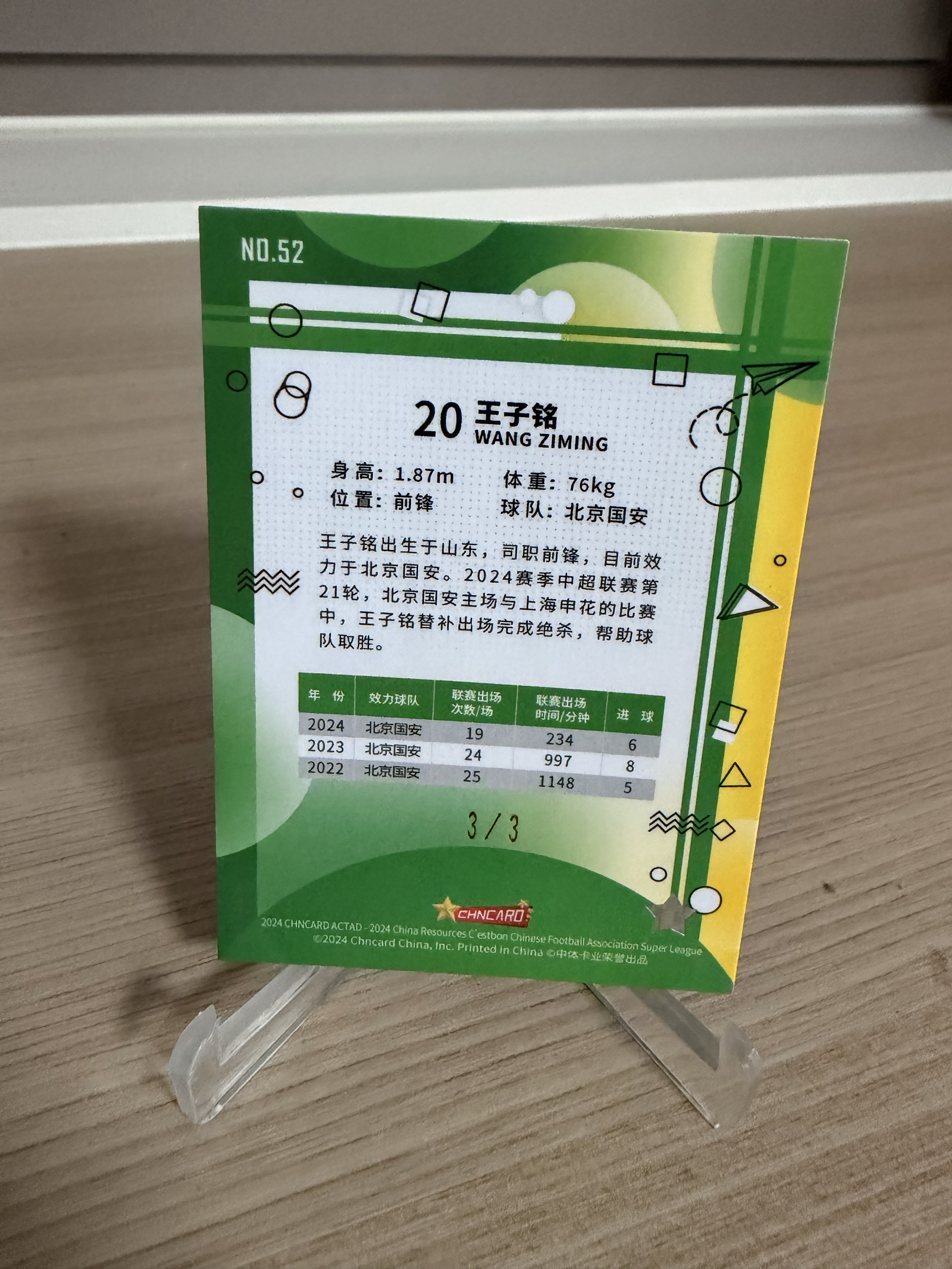 2024 中体卡业 CSL ACTAD(渲染) 北京国安 王子铭 3/3编 渲染折 彩虹折 超低编 尾编 盒hit 中超 国足 中国体育 足协杯冠军 青岛 绝杀上海申花 山东