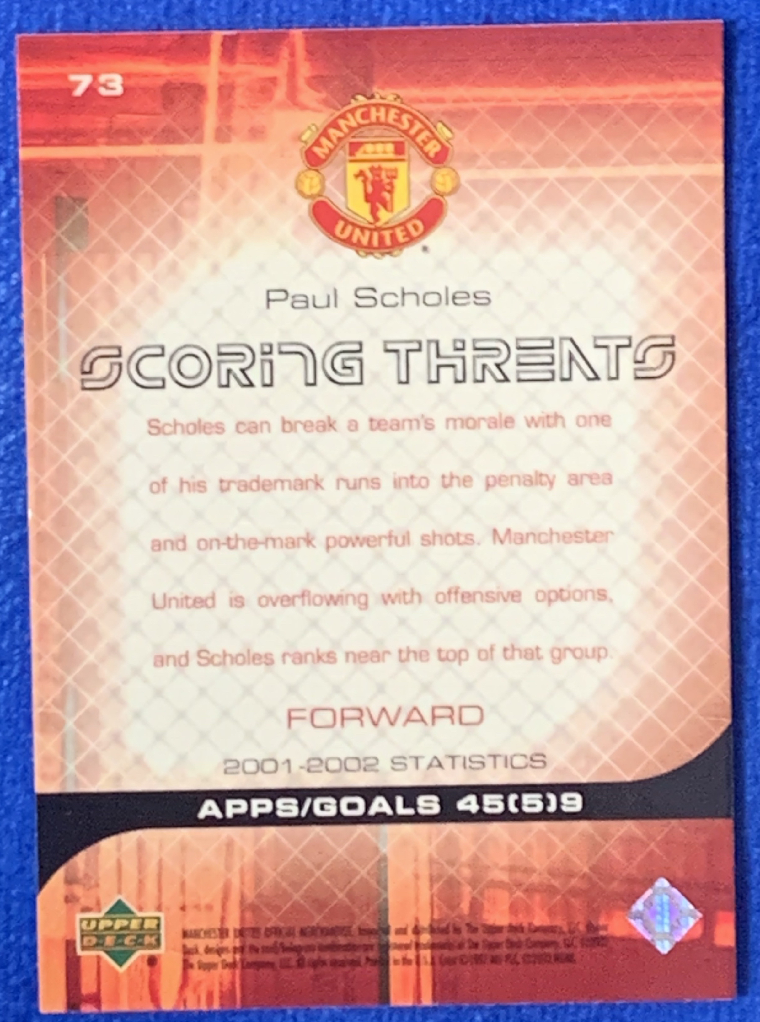 2002 Upper Deck Manchester United Paul Scholes 亚德得分能力特卡 曼联 斯科尔斯 92班 三冠王 英格兰国脚England 经典老卡 不保卡品ebay有价