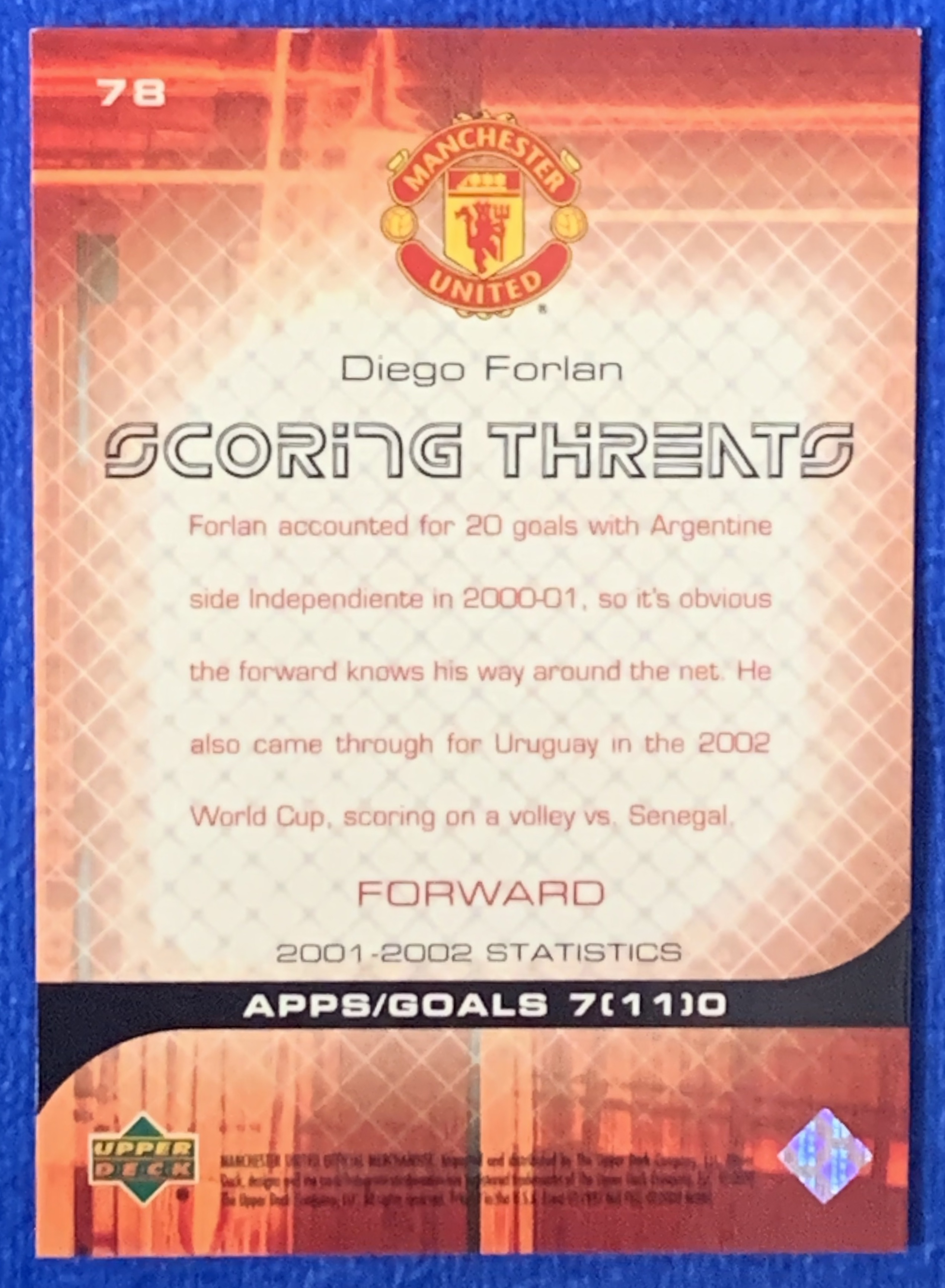 2002 Upper Deck Manchester United Diego Forlán 亚德得分能力特卡 曼联 迭戈弗兰 世界杯金球 西甲金靴 欧洲金靴 乌拉圭 经典老卡 不保卡品 ebay有价