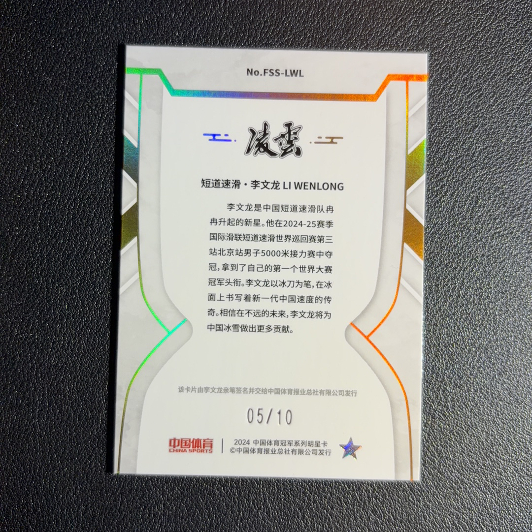 2024 奇卡 QICA 中国体育 凌云系列 李文龙 速度滑冰 FS 新秀 金折 折射 签字 卡签 05/10编 轻印 -S00468