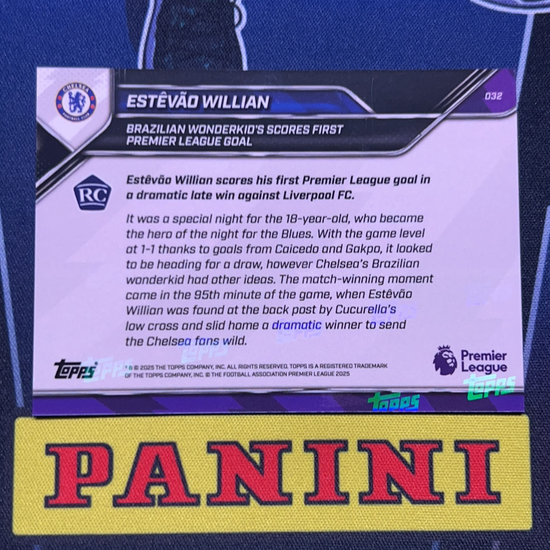 2025 Topps Now Estêvão Estevao RC 切尔西巴西天才埃斯特旺在英超联赛中首球,成为史上第三年轻的巴西球员。佩德罗 恩佐 德拉普 内托 凯塞多 帕尔默 乔治 吉滕斯