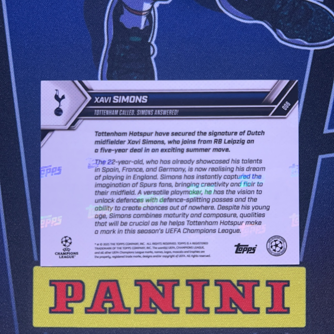 2024-25 Topps Now Xavi Simons RC 哈维西蒙斯 托特纳姆热刺 50编 金折 英超 热刺 欧冠 西班牙中场 托特纳姆热刺呼叫!西蒙斯应答! 屁屁卡卡 卡淘第一张