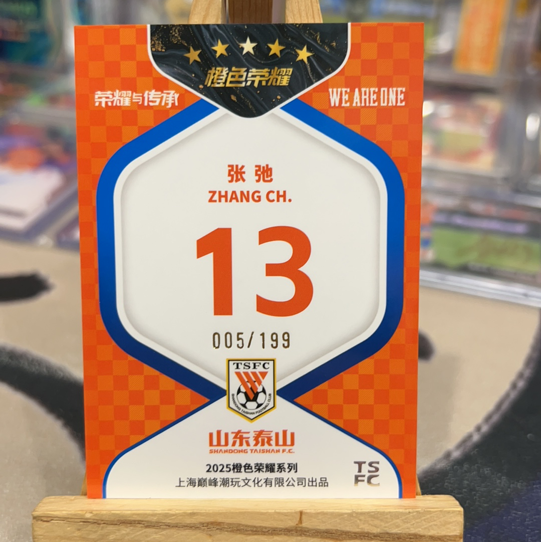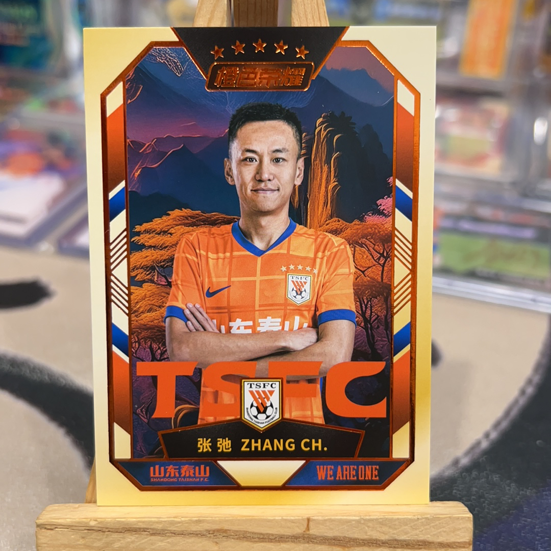 2025 巅峰潮玩 橙色荣耀 张弛 【耳朵卡社】巅峰潮玩 2025 山东泰山队盒 橙色荣耀 铜折 5/199编 张弛 sollent