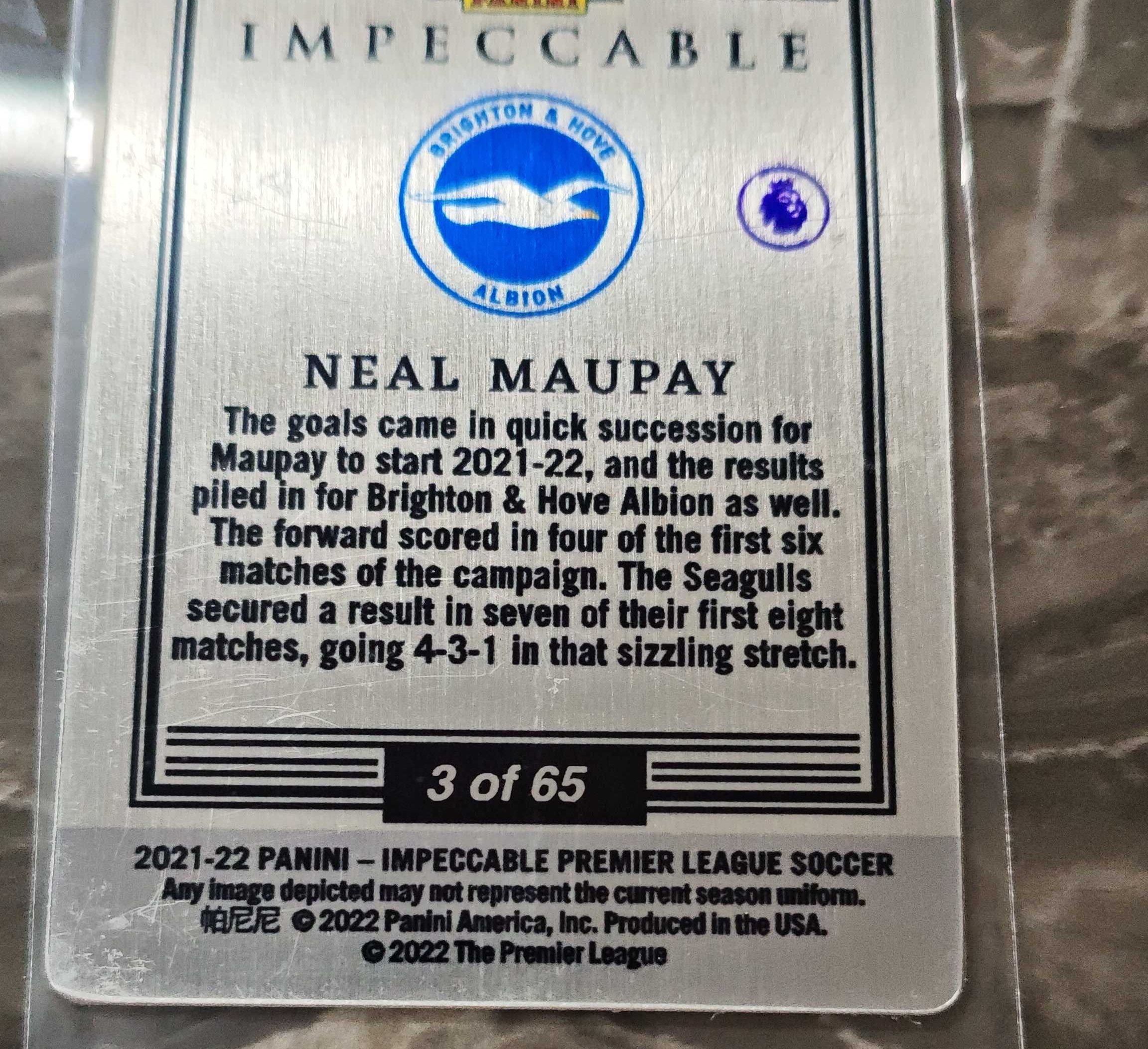 2021-22 Panini Impeccable Neal Maupay 英超 小真金 莫帕 莫派 布莱顿 铁板 带编 03/65编 凑套必备 瑕疵如图 不退不换 V11