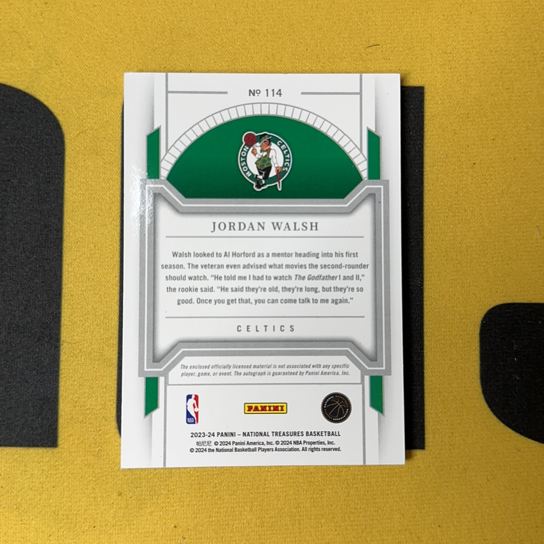 2023-24 Panini National Treasures Jordan Walsh RC 乔丹 沃尔什 国宝 rpa 99编 签字 卡签 凯尔特人 塔图姆队友 年仅21
