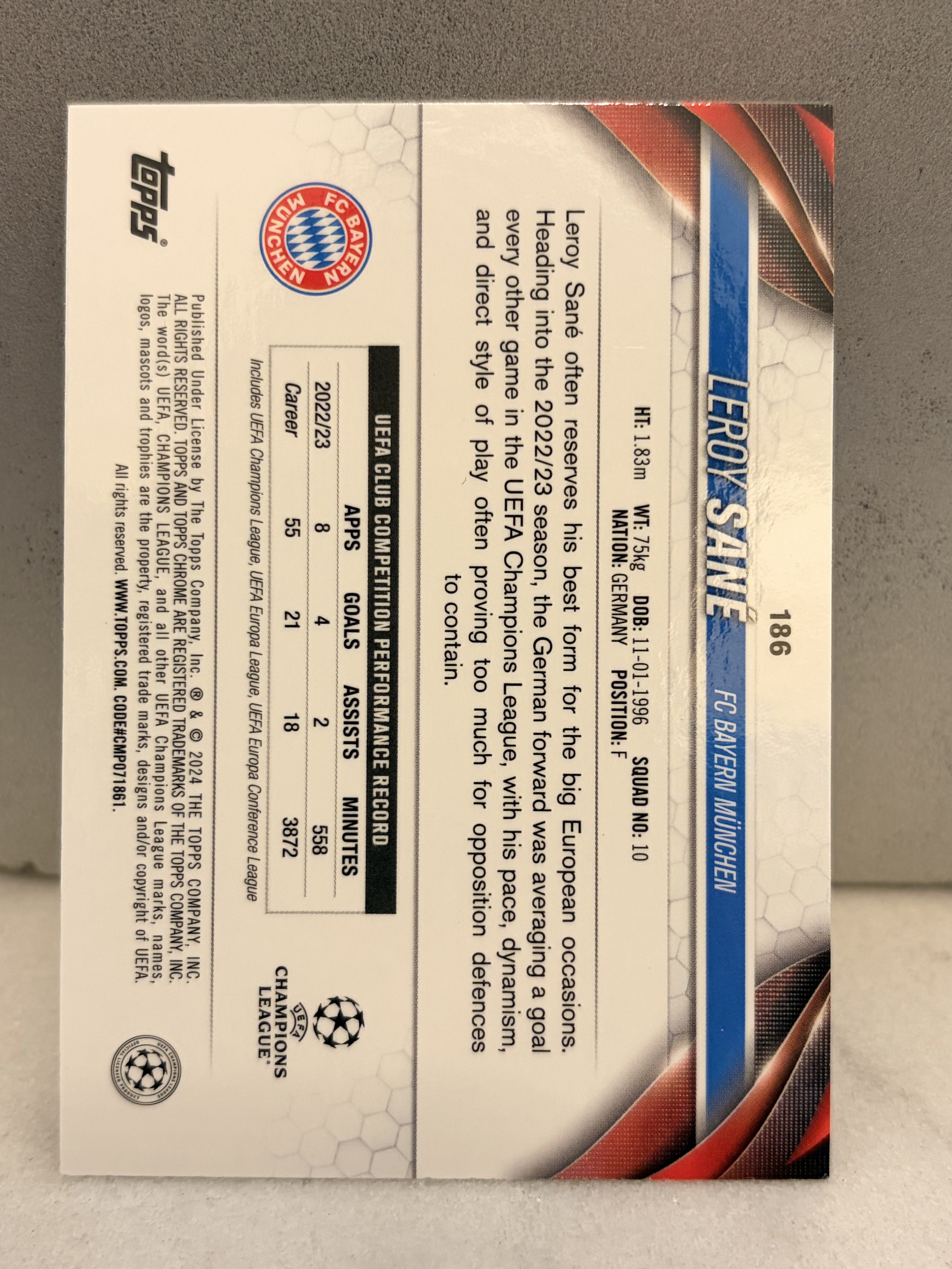 2024 Topps UEFA Champions League Leroy Sané 欧冠拜仁萨内大比例SSP88/99编蓝折球皮折卡品如图博PSA10彩虹凑套 穆夏拉哈兰德哈弗茨C罗梅西穆勒基米希