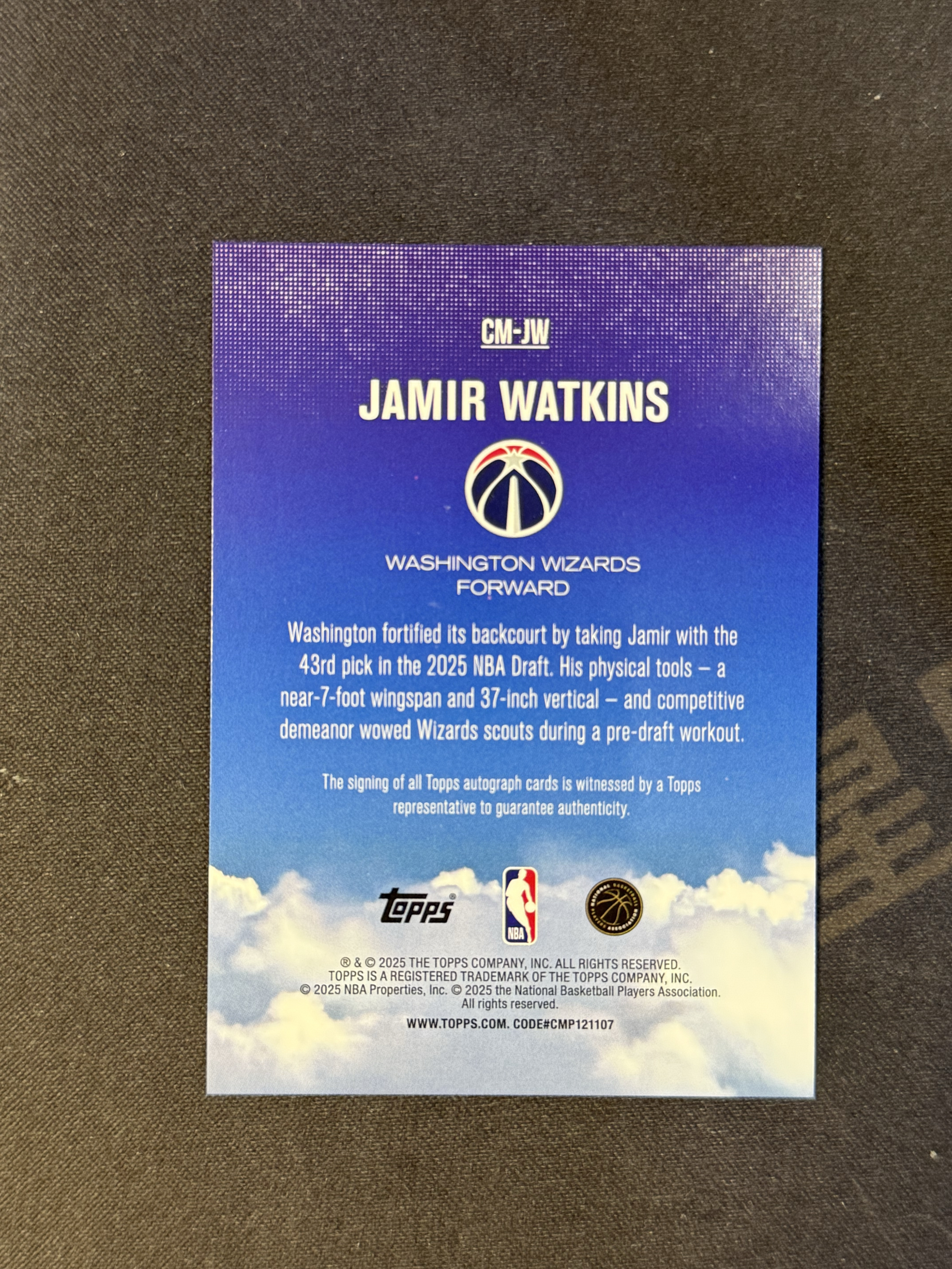 2025-26 Topps Flagship Jamir Watkins RC 潜力新秀 奇才 沃特金斯 签字 前途可期 卡品如图 收藏必备 金城