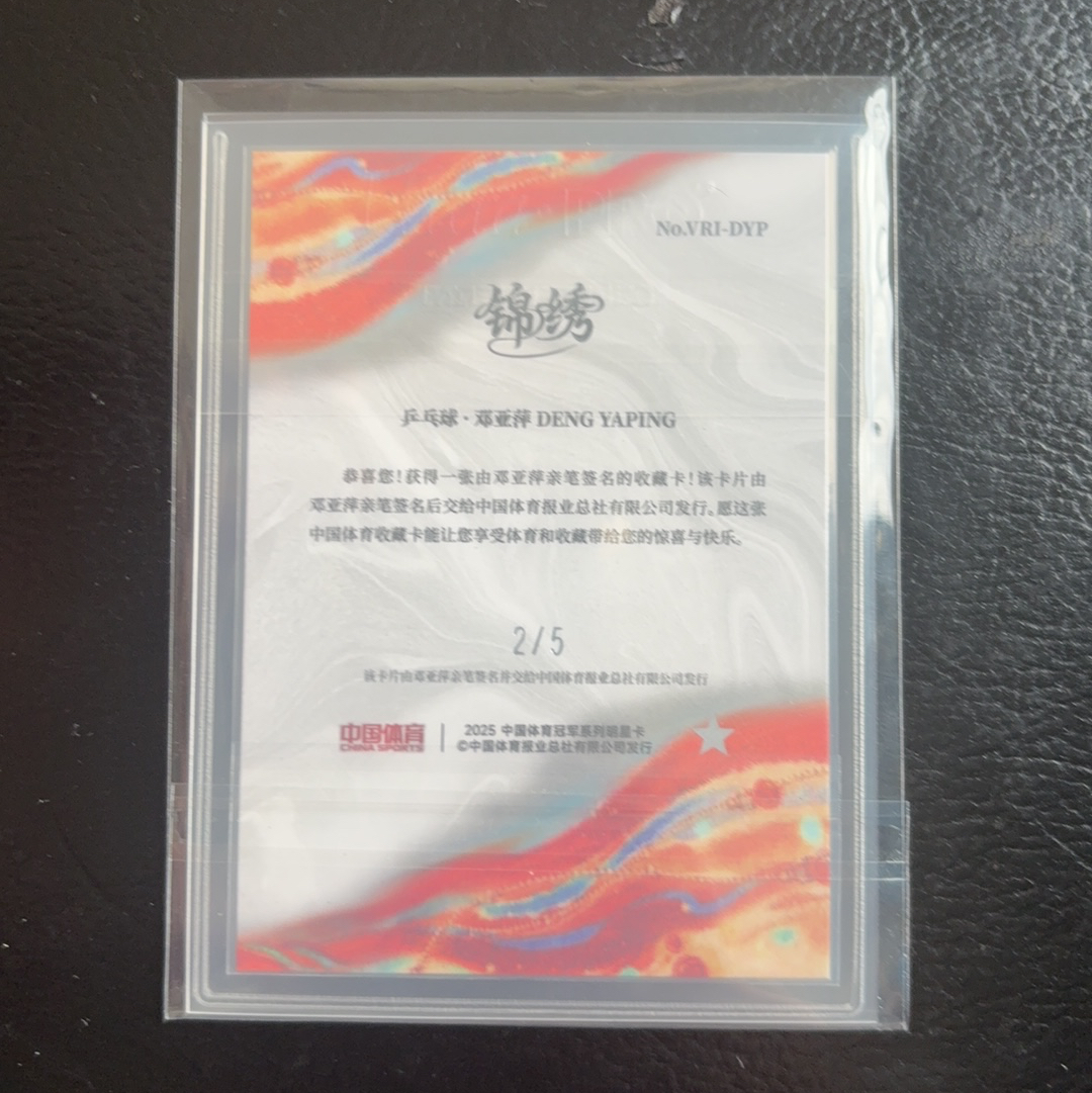 北京奇卡文化 2025中国体育 锦绣 系列收藏卡 卡位:铭刻签字卡 人物:邓亚萍 2/5低编HIT 收藏佳品 不保卡品(排骨)