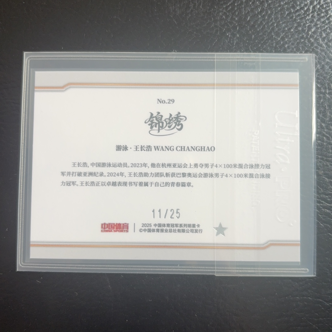 北京奇卡文化 2025中国体育 锦绣 系列收藏卡 卡位:基础平行卡 人物:王长浩 11/25 收藏佳品 不保卡品(排骨)