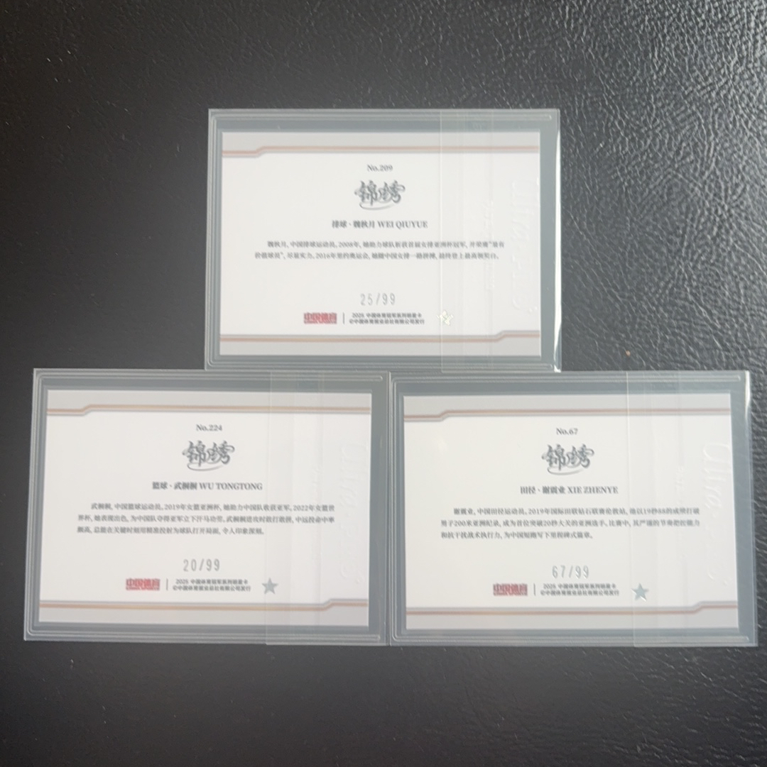 北京奇卡文化 2025中国体育 锦绣 系列收藏卡 卡位:基础平行99编 三张同出 收藏佳品 不保卡品(排骨)