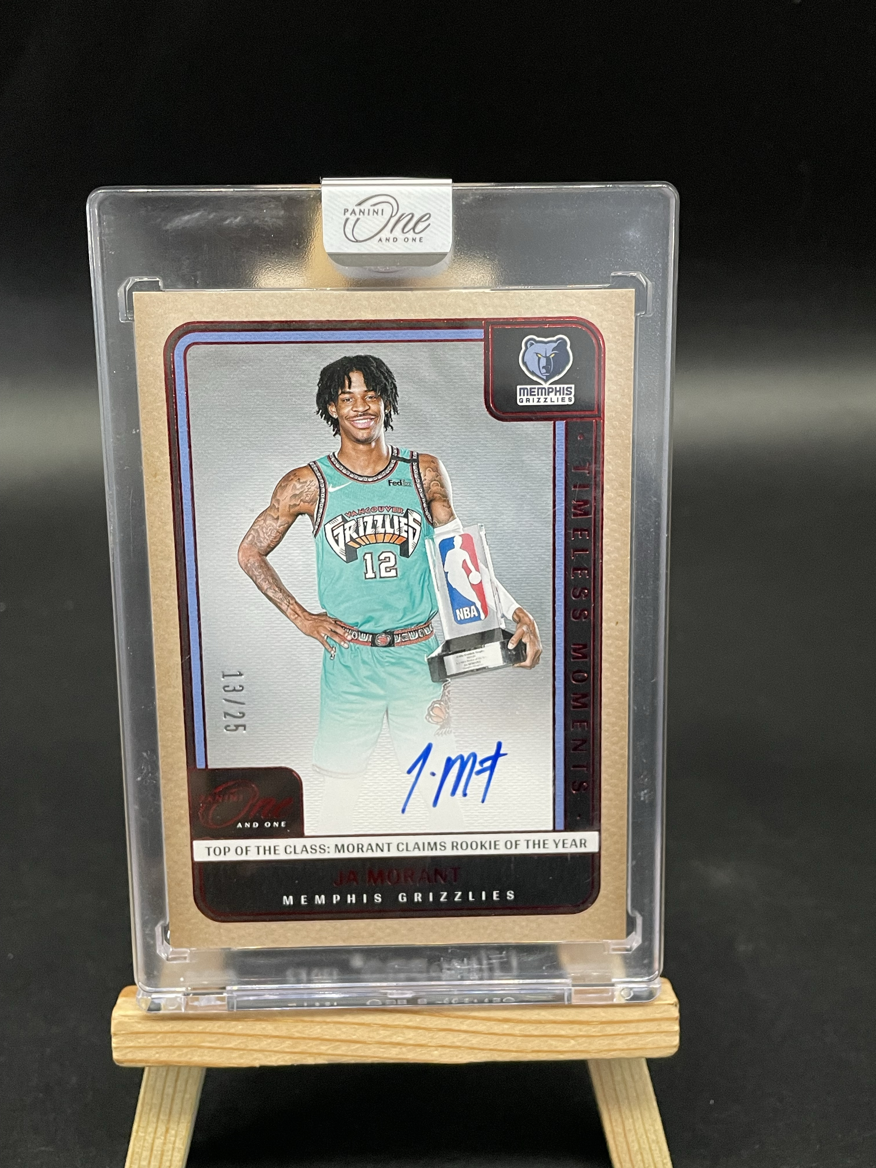 2024-25 Panini One and One Ja Morant 【白鸟拍卖 口罩】时刻 捧杯 最佳新秀 贾 莫兰特 /25编 timeless moments 签字 卡签 微瑕如图 原封砖