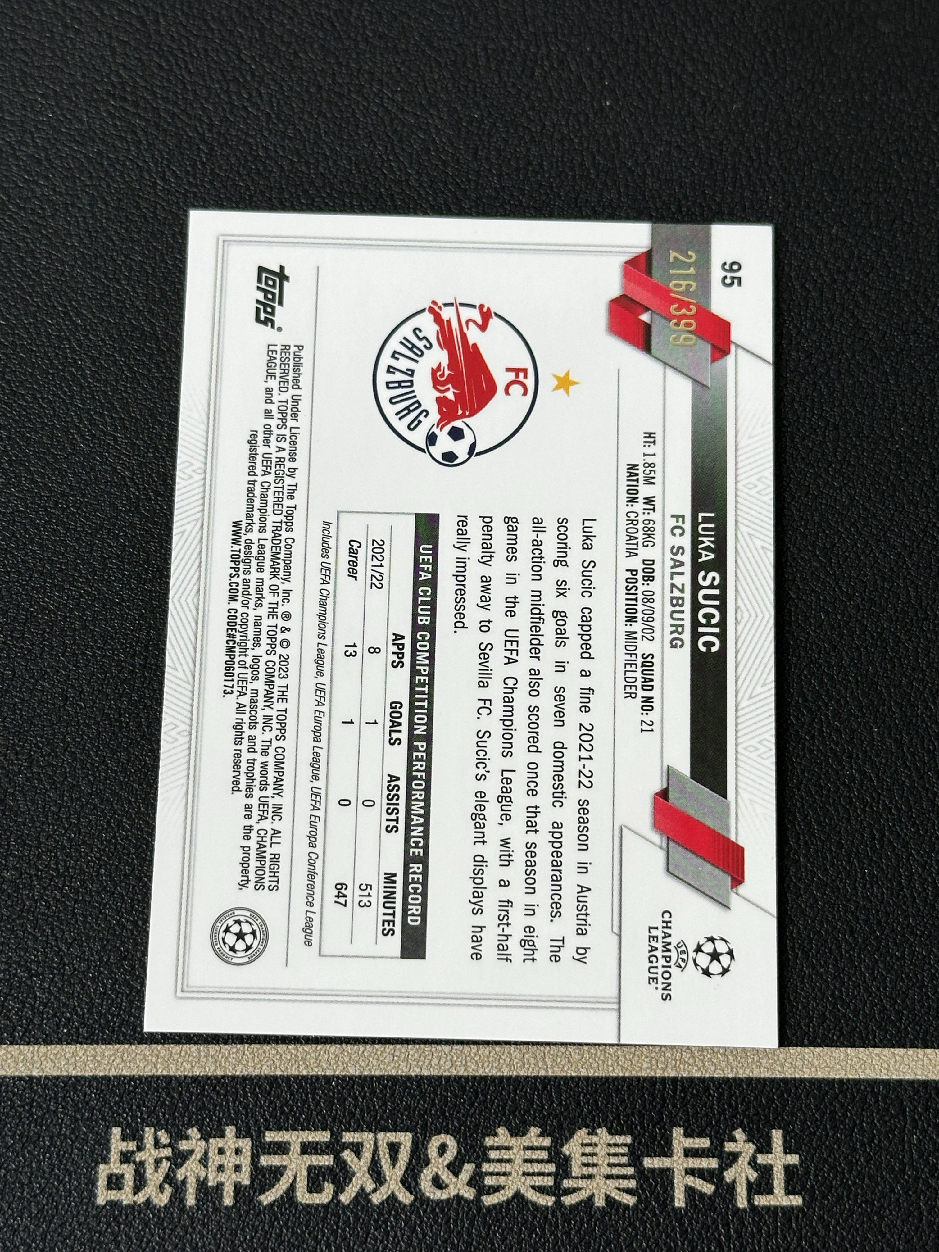 2023 Topps Chrome Luka Sucic 欧战 萨尔茨堡红牛 卢卡 苏契奇 399编 绿折 战神无双(#magit)