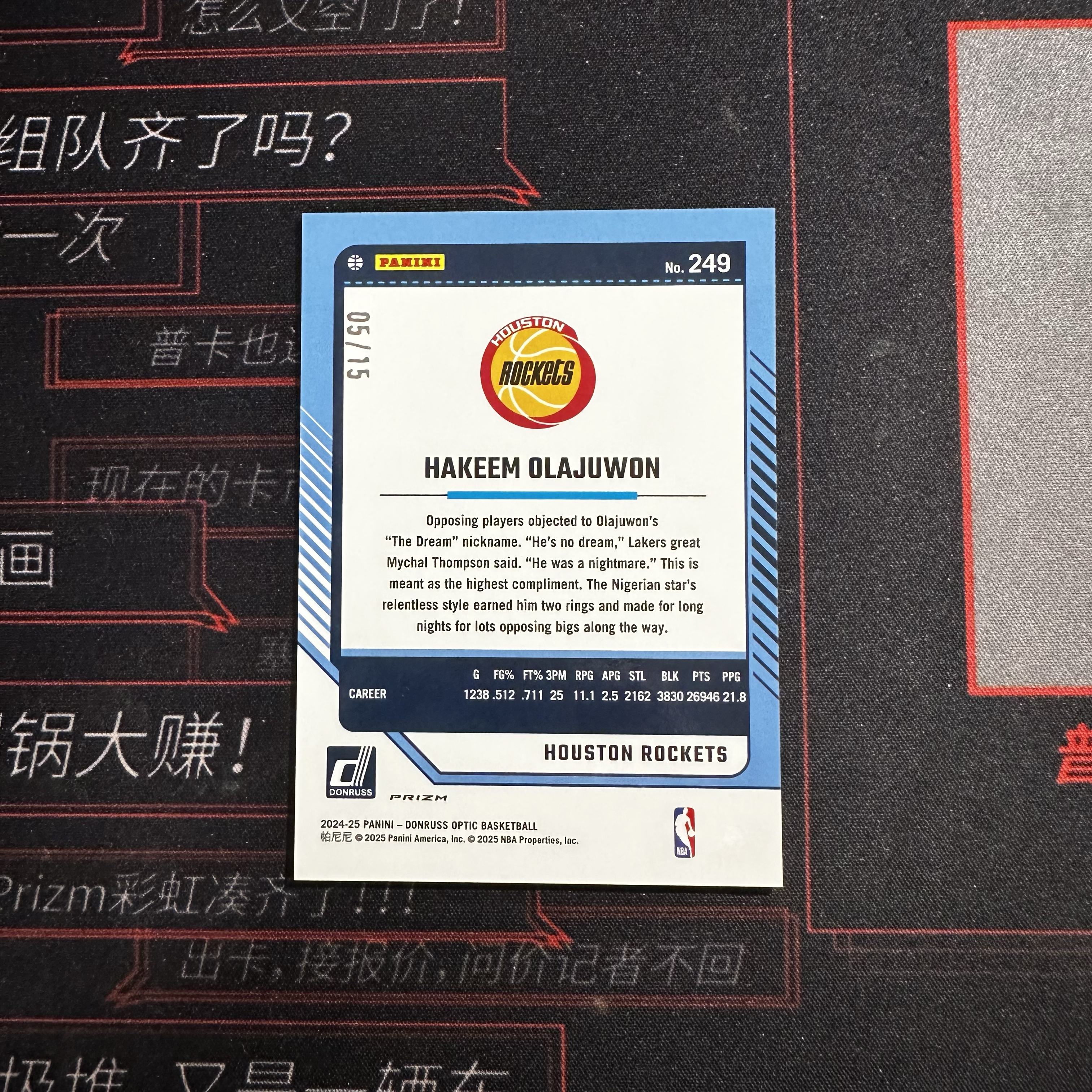 [qz拍卖]2024-25 Panini 杜蕾斯 Donruss Optic 火箭 哈基姆 奥拉朱旺 Hakeem Olajuwon 大梦 5/15编白圈圈折 大比例 潜力无限 专收必备