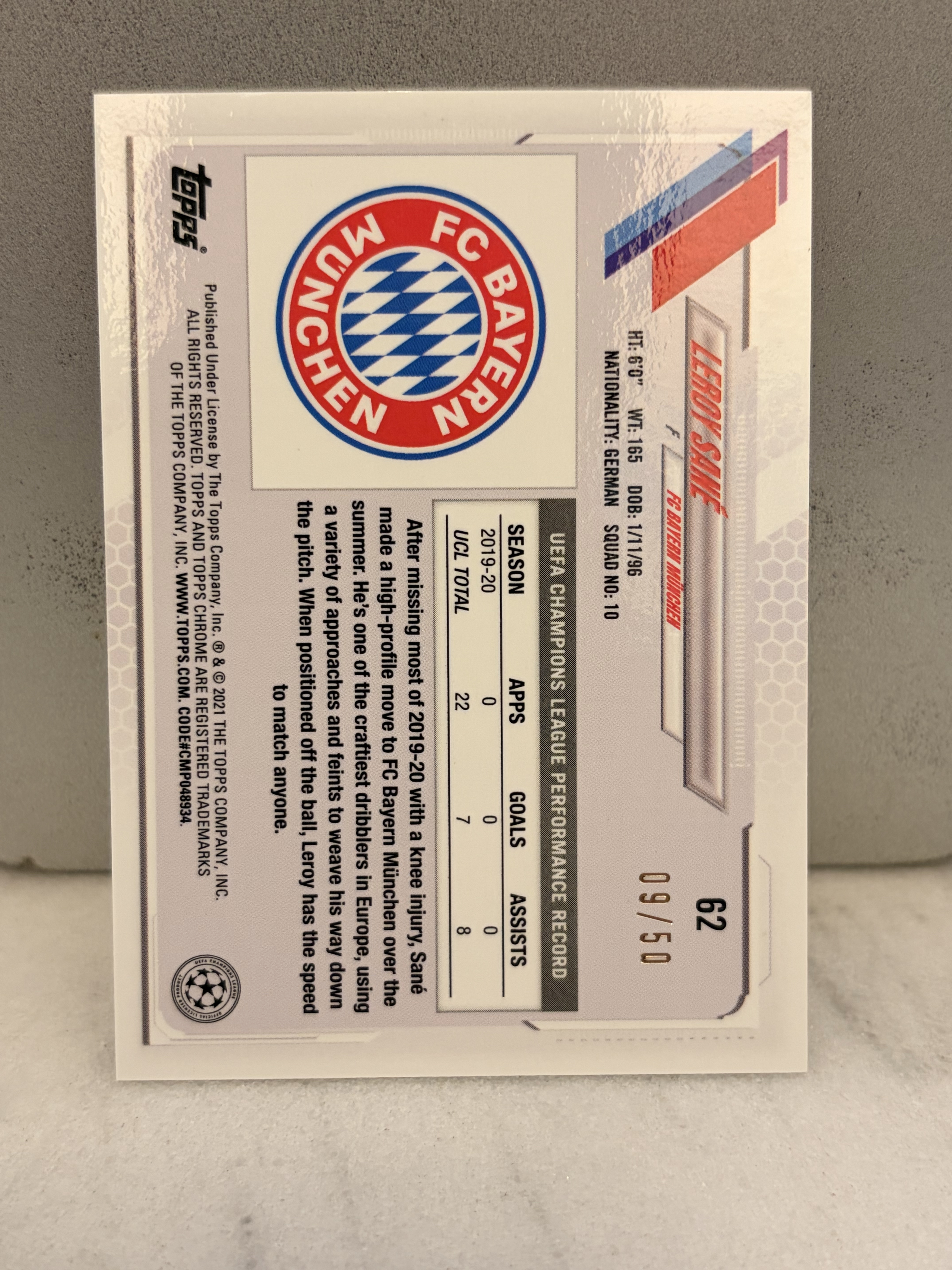 2021 Topps UEFA Champions League Leroy Sané 欧冠TC拜仁萨内大比例SSP9/50编正金折电音青木联名卡品如图博PSA10彩虹凑套 凯恩维尔茨穆夏拉基米希