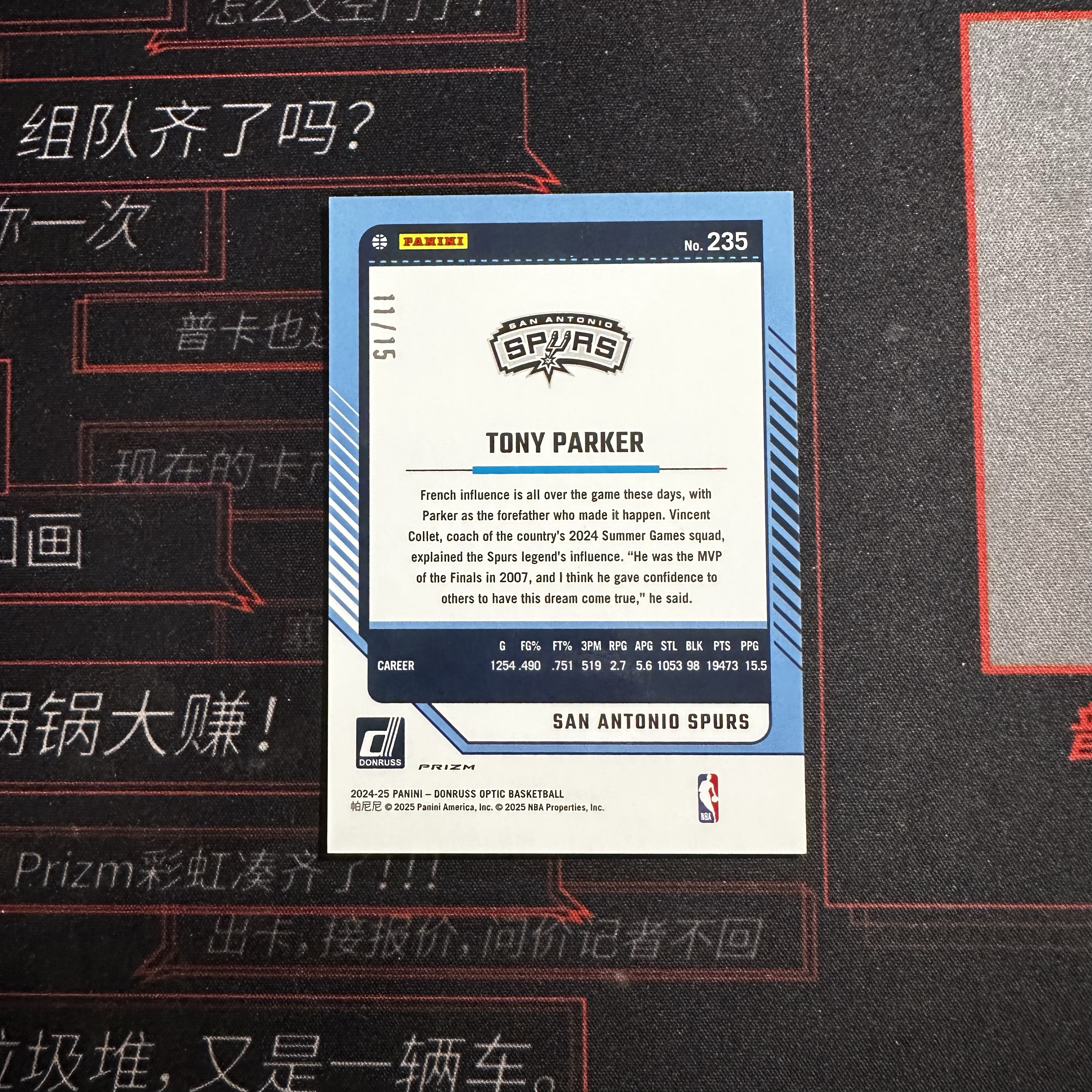 [qz拍卖]2024-25 Panini 杜蕾斯 Donruss Optic 马刺 托尼 帕克 Tony Parker 11/15编白圈圈折 Colormatch 大比例 潜力无限 专收必备