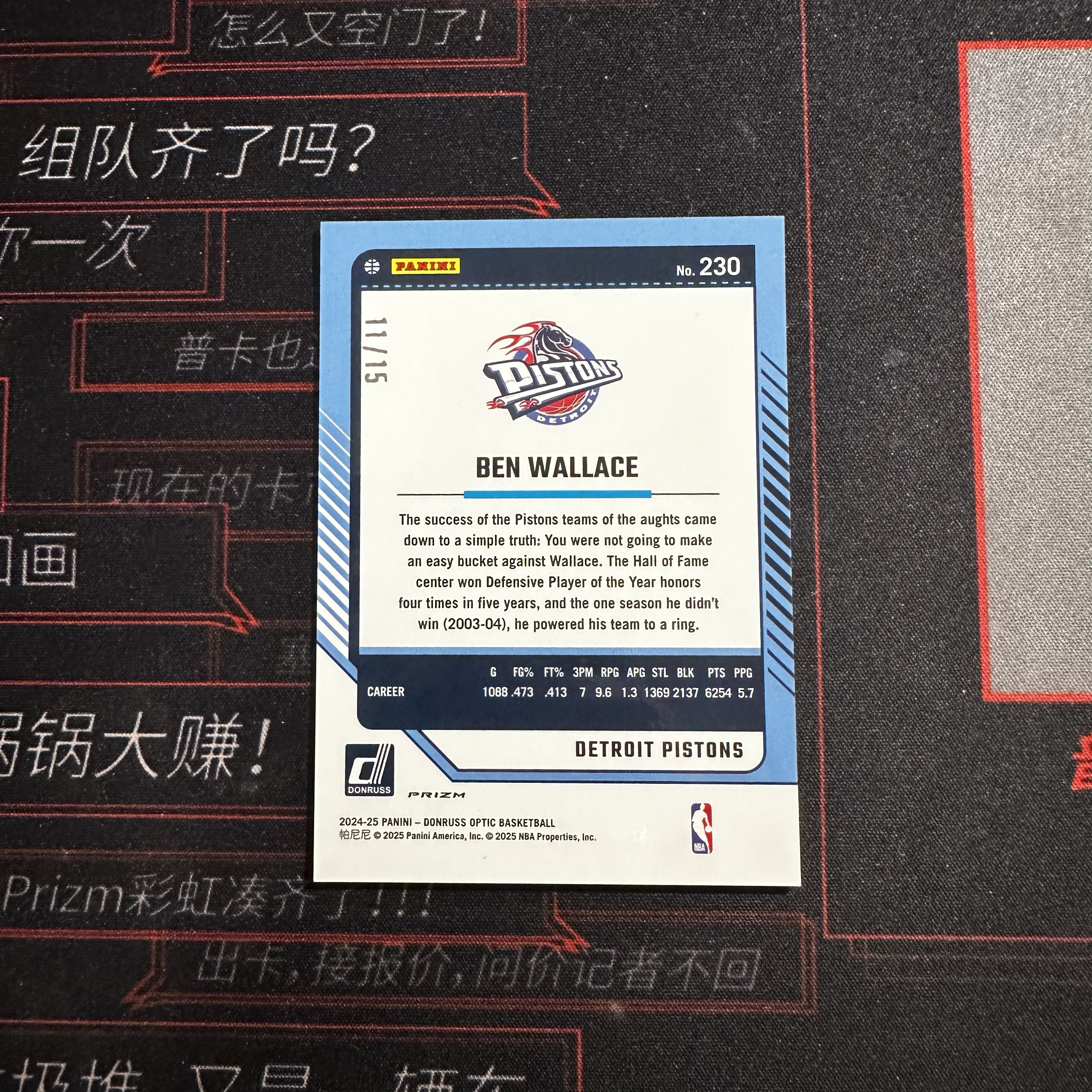 [qz拍卖]2024-25 Panini 杜蕾斯 Donruss Optic 活塞 本 华莱士 Ben Wallace 大本 11/15编白圈圈折 大比例 潜力无限 专收必备