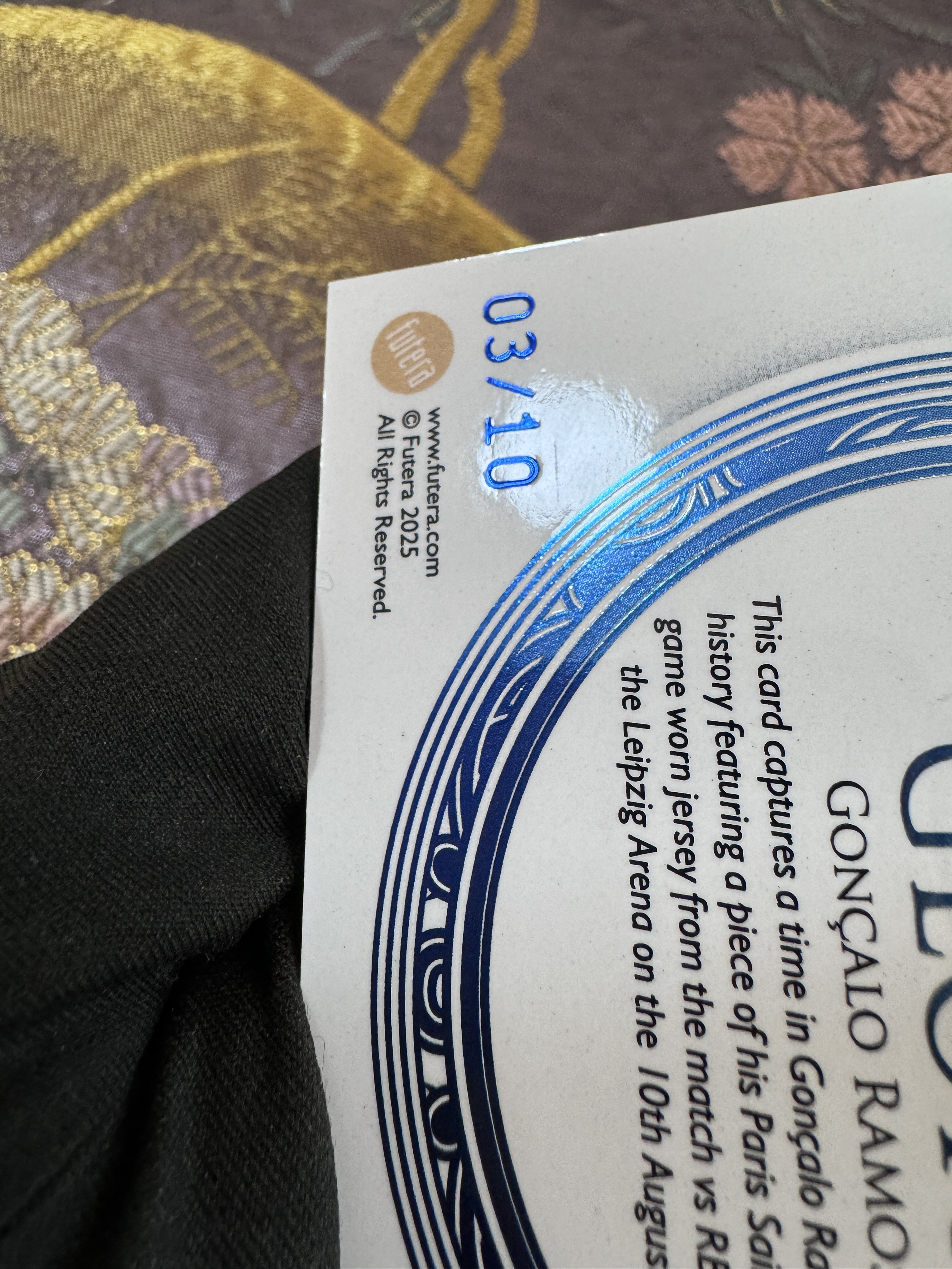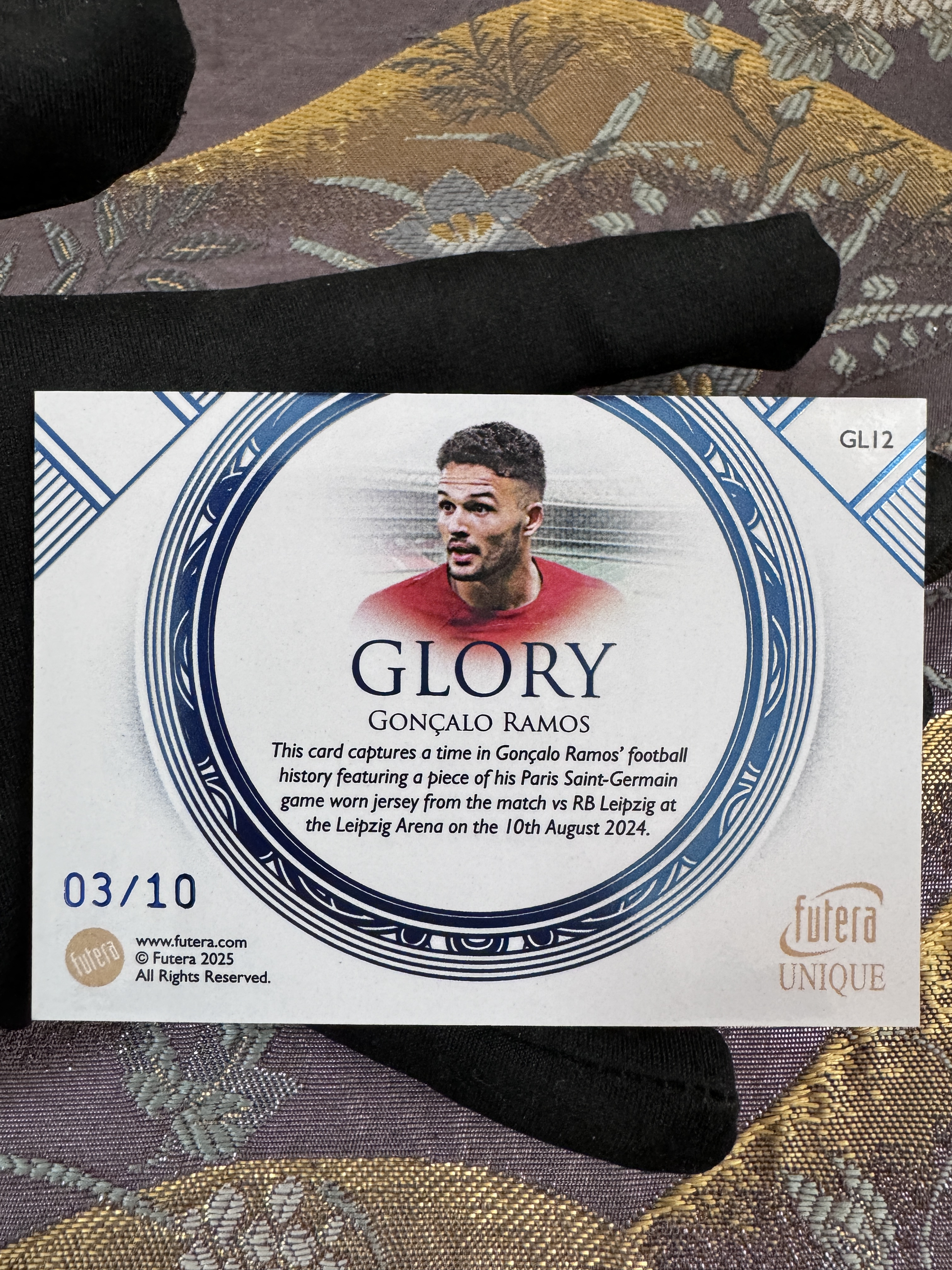 2025 Futera Futera Unique Goncalo Ramos 福特拉 葡萄牙 大巴黎 超级巨星 贡萨洛 拉莫斯 投资大热 六窗物料切割 GU落场球衣 蓝平行 03/10编 实卡精美