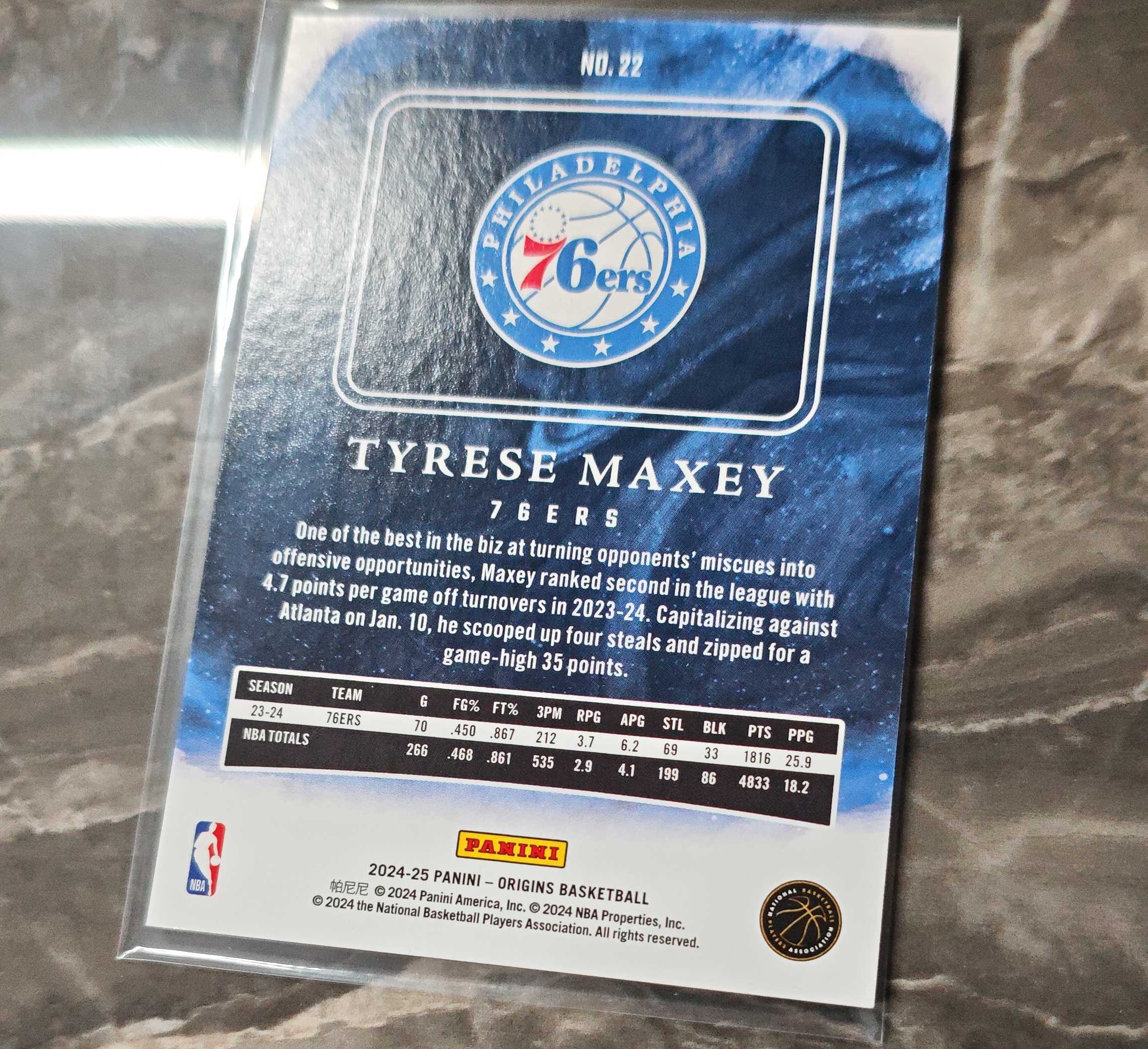2024-25 Panini Origins Tyrese Maxey NBA 起源 泰雷斯 马克西 76人 红酒折 折射 带编 060/115编 实卡精美 瑕疵如图 不退不换 凑套必备 V11