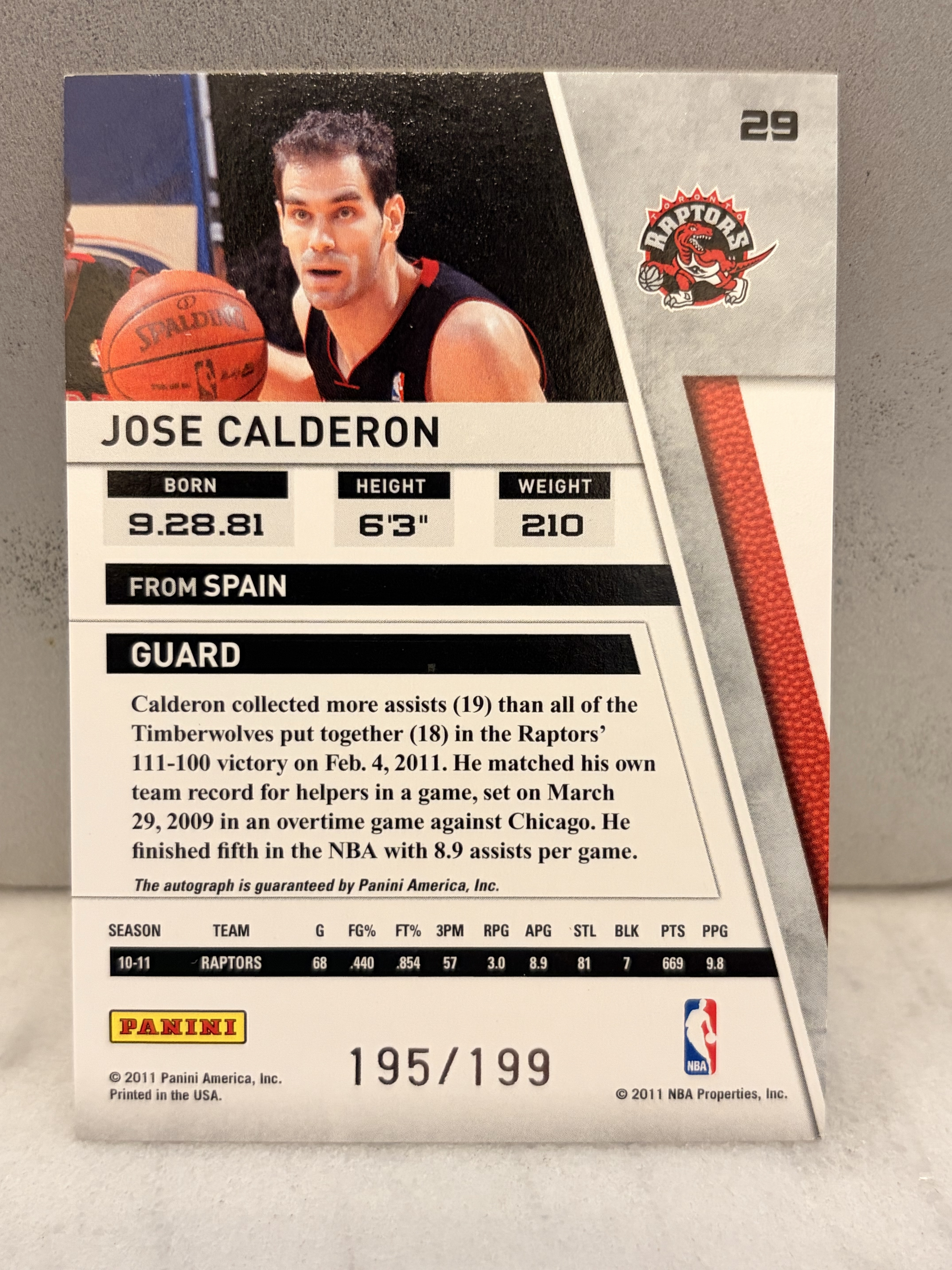 2011 Panini Season Update Jose Calderon 猛龙何塞 卡尔德隆大比例SP195/199编快攻贴签字卡品如图博PSA10彩虹凑套 伦纳德洛瑞德罗赞卡特麦迪库里西亚卡姆