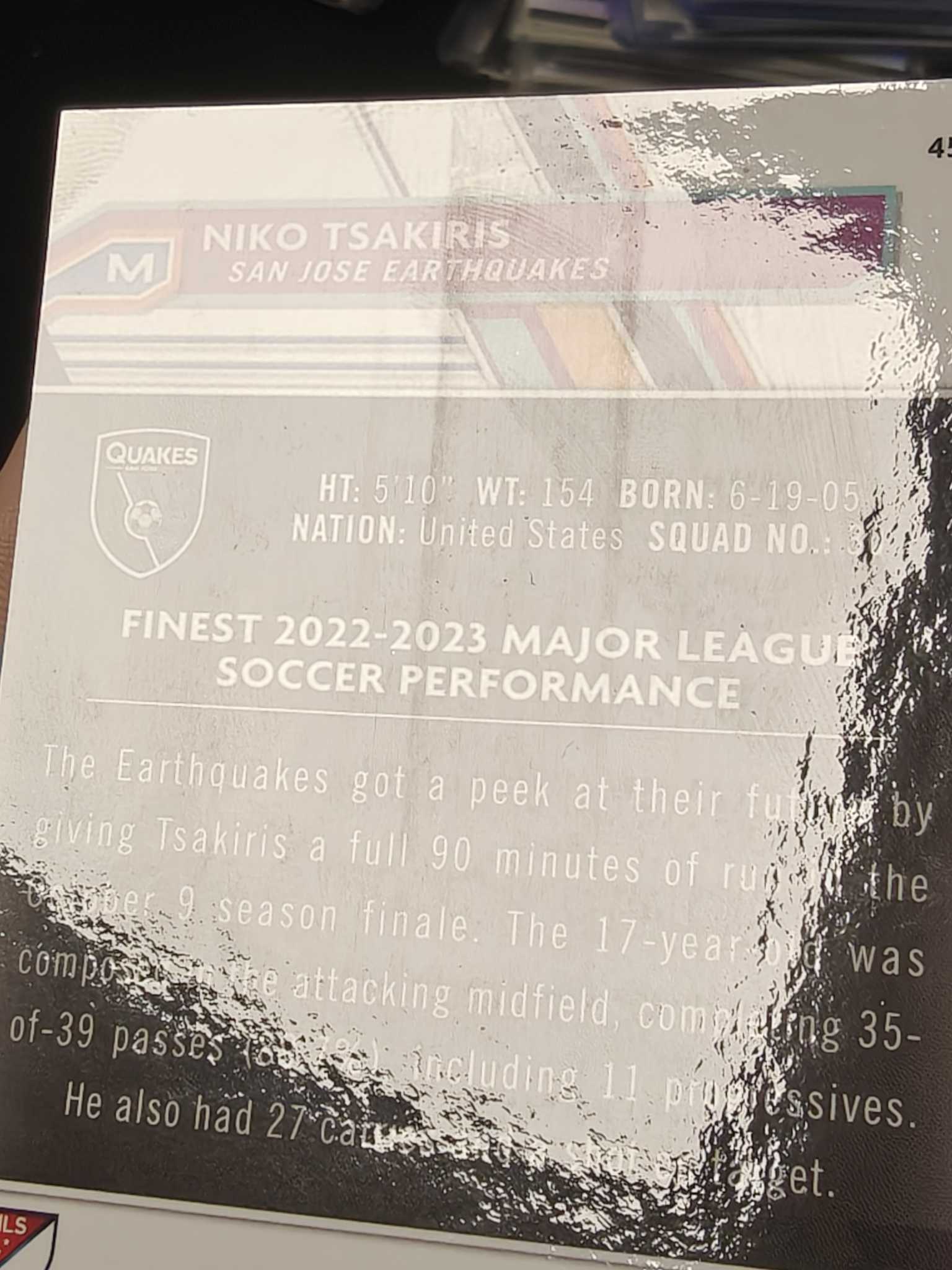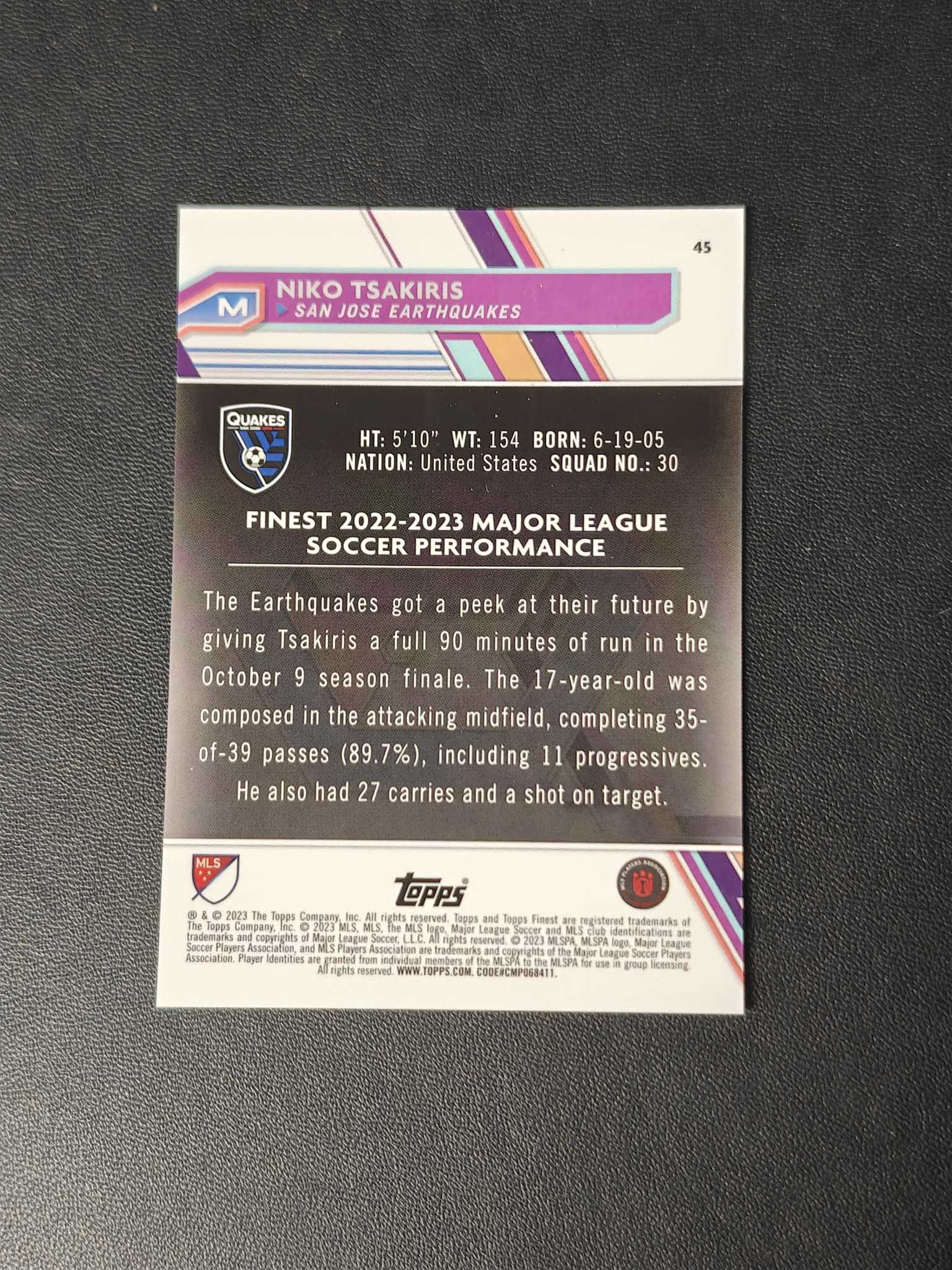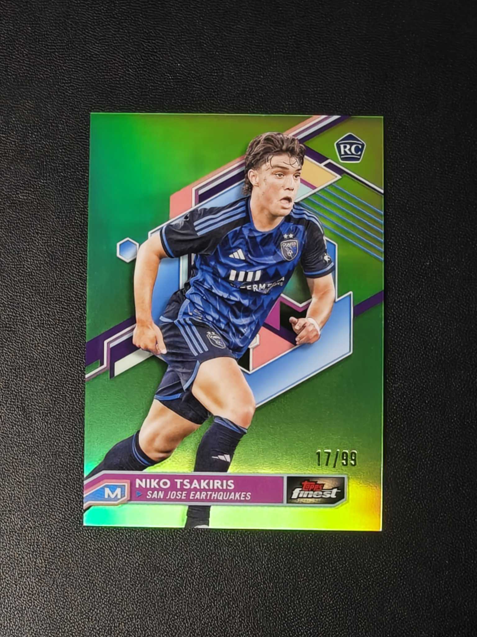 拔脚叶哥A81 2023 Topps MLS 美职联 Finest Niko Tsakiris 尼科 察基里斯 圣何塞地震 17/99编 绿折 新秀RC 瑕疵如图 SH999 N51201
