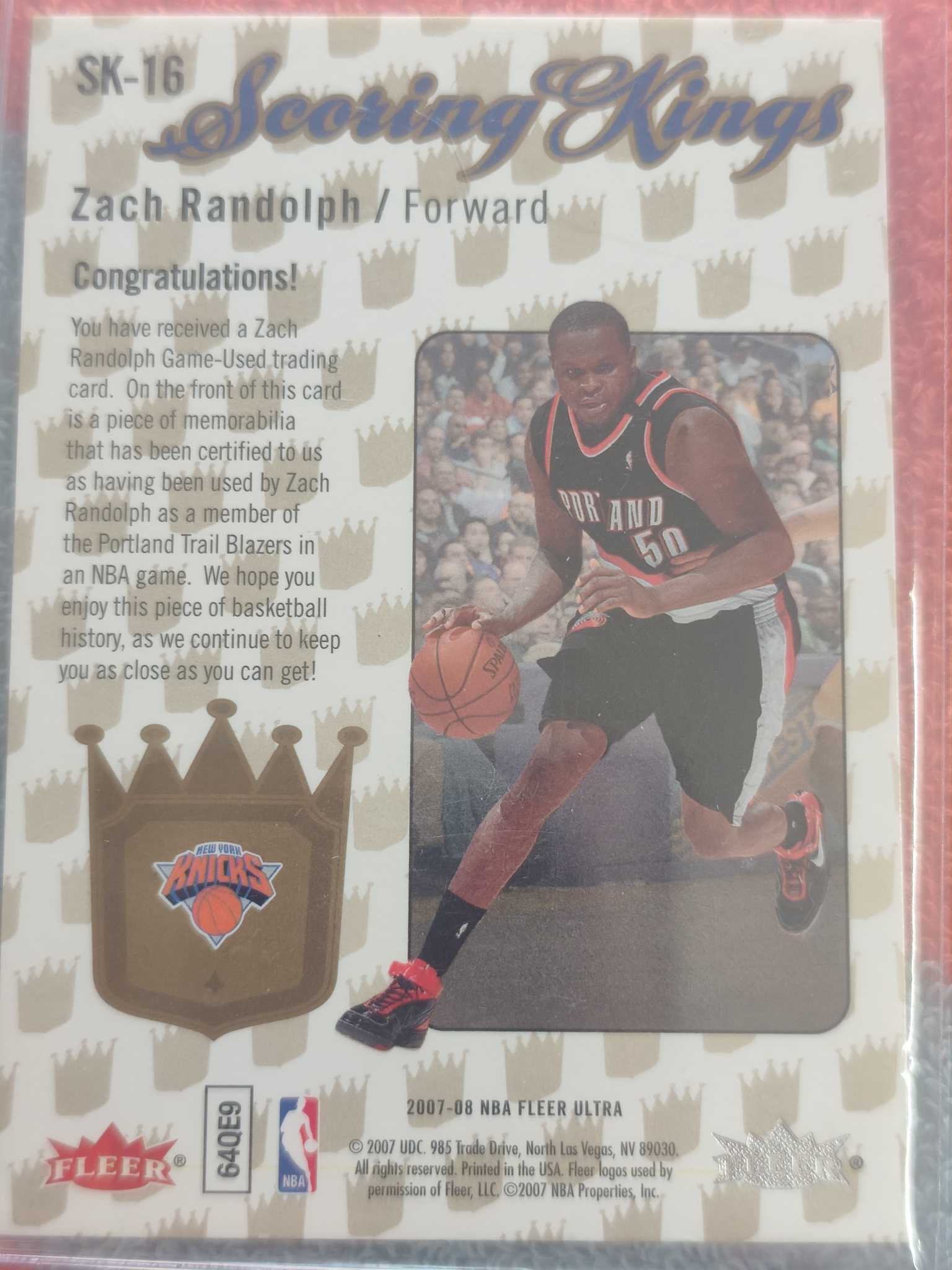 2007-08 Fleer Ultra Zach Randolph 2007-08 Fleer Ultra Zach Randolph/Knicks,兰多夫 球员亲穿球衣切割物料 收藏价值高 如图