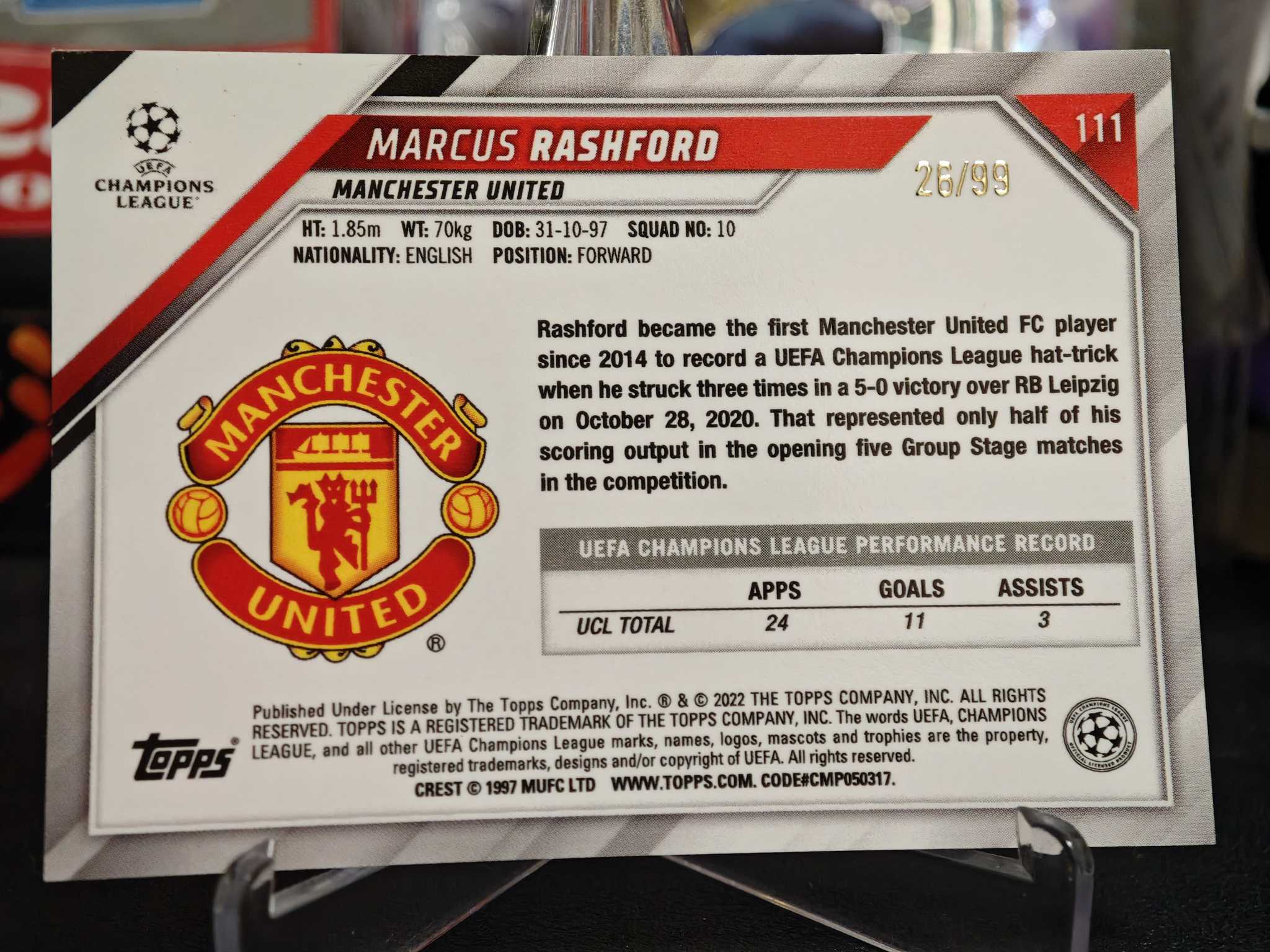 2022 Topps Chrome Marcus Rashford [隔天不合并]🇬🇧Manchester United 26/99 拉什福德 巴萨Barcelona亚马尔 佩德里队友 阅读商品描述