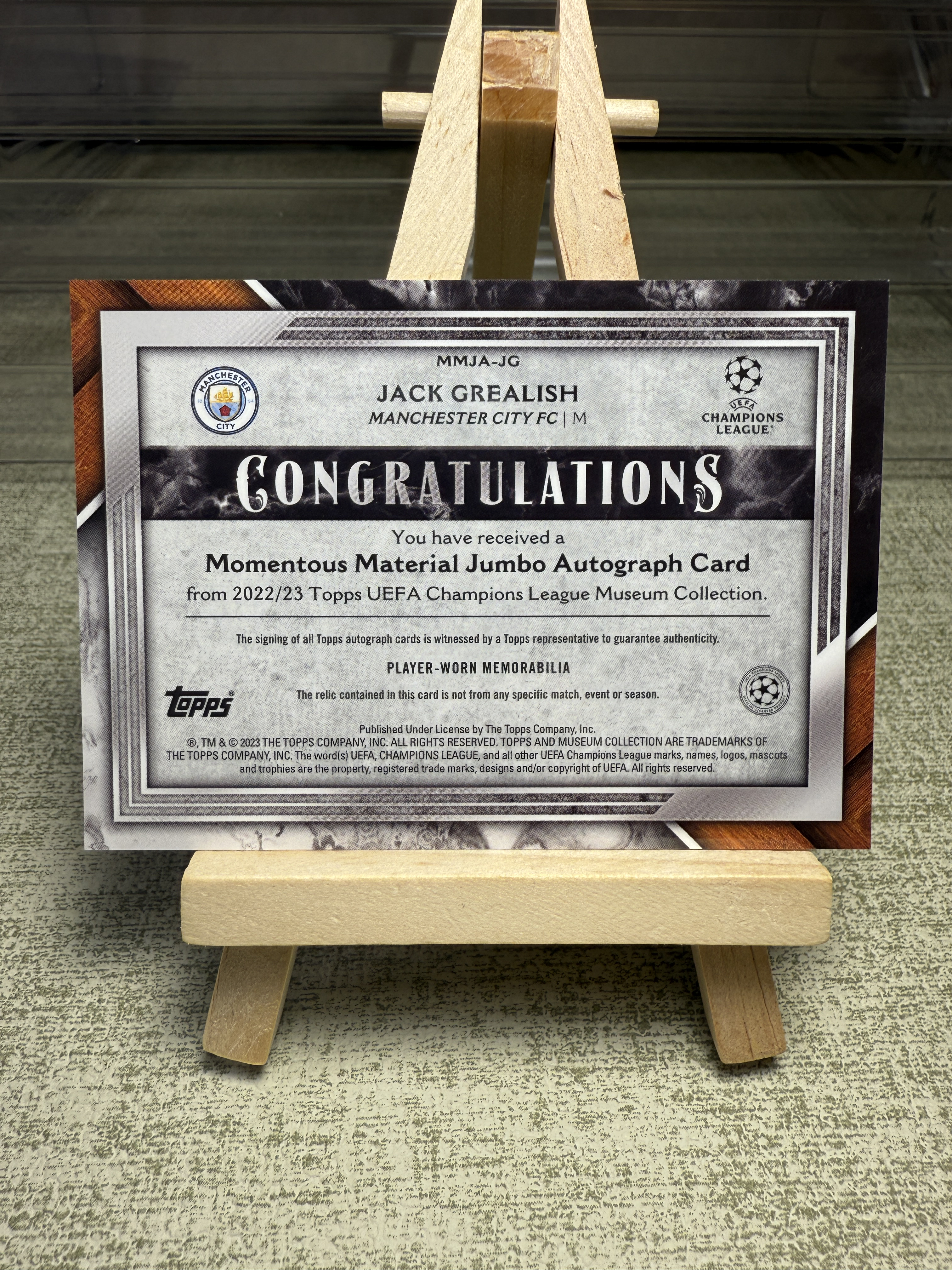 2023 Topps MUSEUM Jack Grealish 杰克 格拉利什 曼城 英格兰 博物馆 061/199编 签字 物料签 大窗球衣 物料 摇子 欧冠 欧战 完美签 横版 维拉 埃弗顿