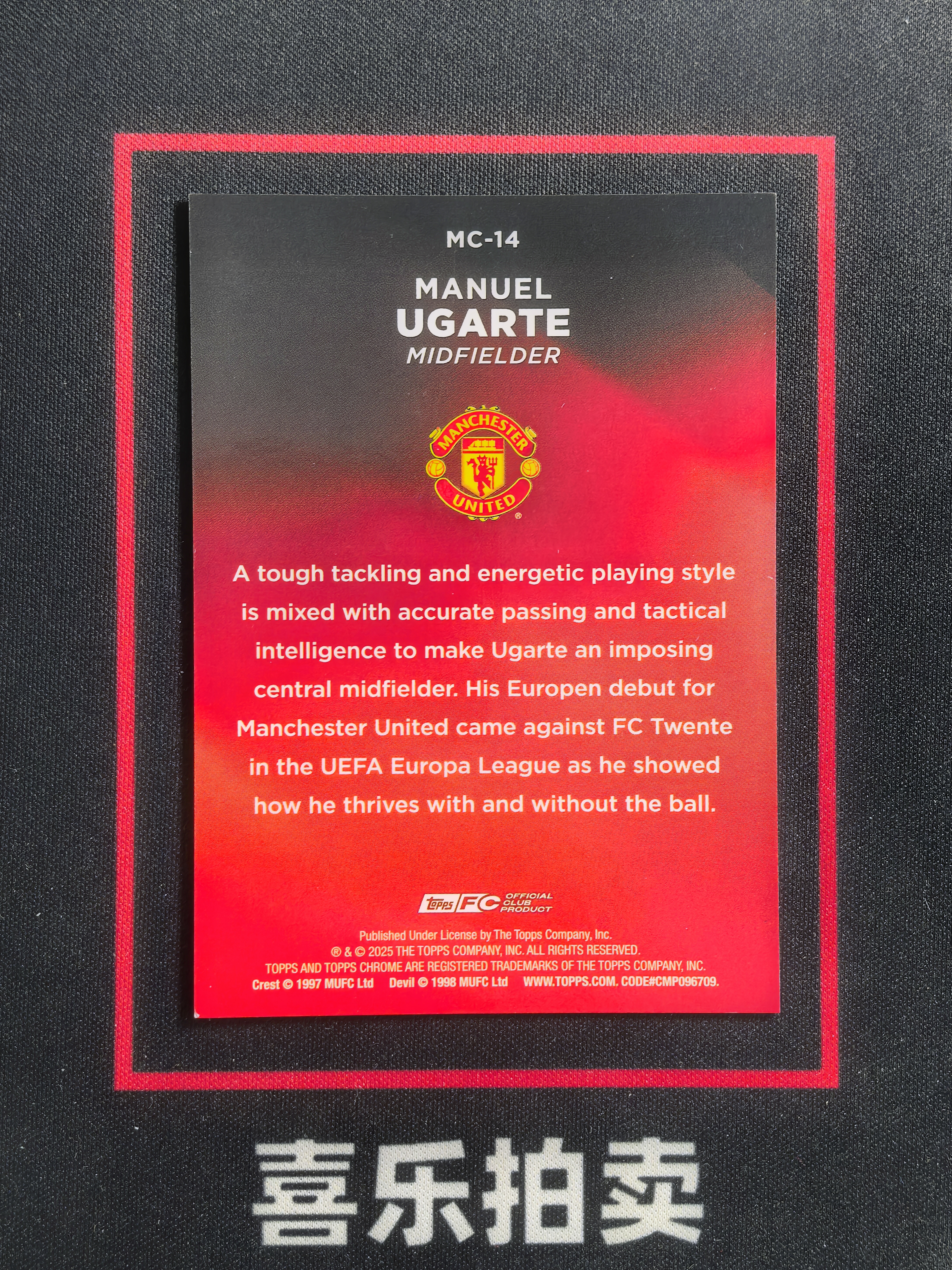 2025 Topps Chrome Manuel Ugarte TC曼联队盒 高端队盒 曼彻斯特联 乌加特 08/10编 超低编 黑折 折射 收藏必备 卡品如图 ltx