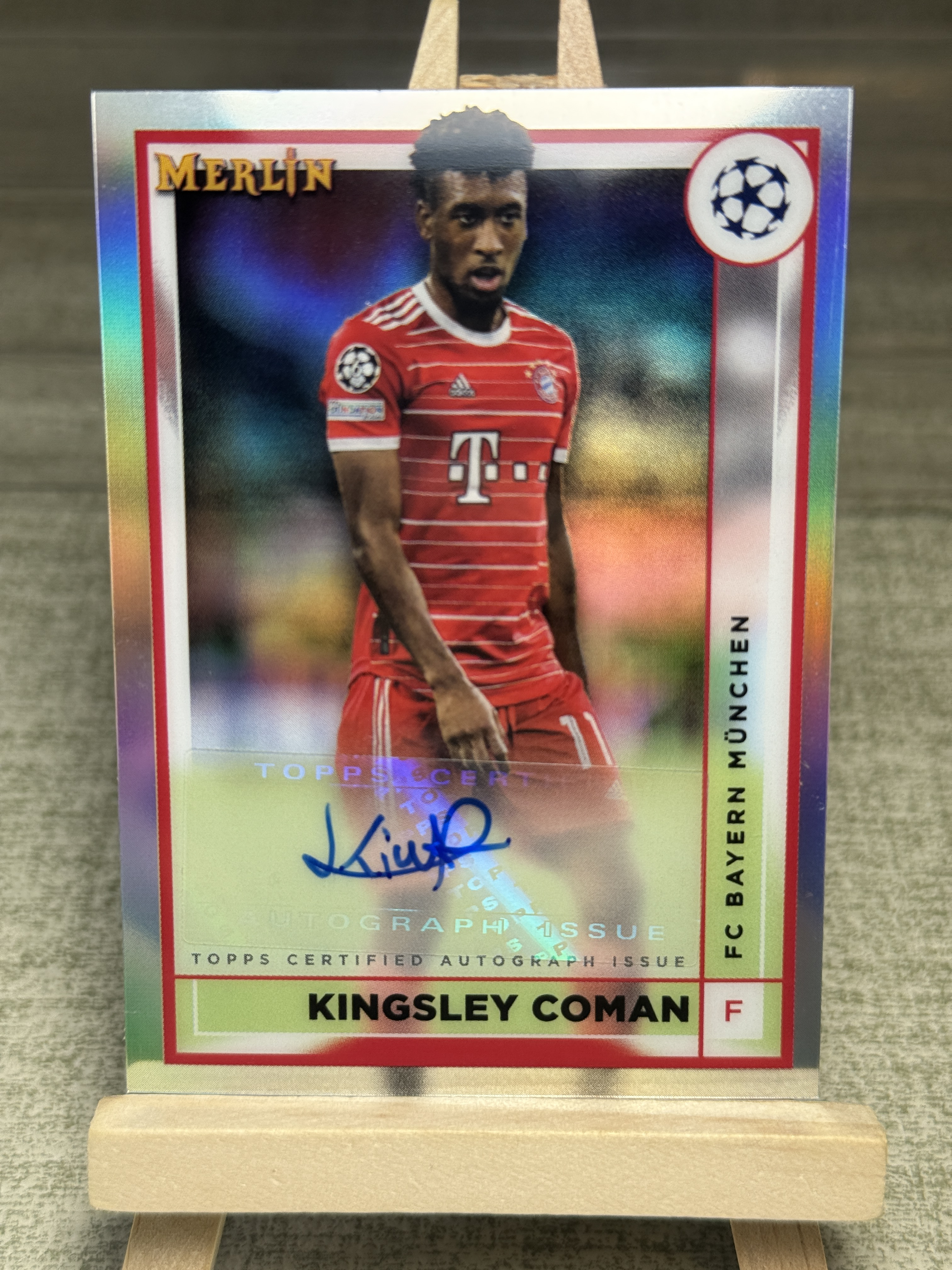 2023 Topps Merlin chrome Kingsley Coman 金斯利 科曼 拜仁 尤文 法国 梅林 签字 银折 银折签 欧冠 欧战 拜仁慕尼黑 梅林折 梅林签