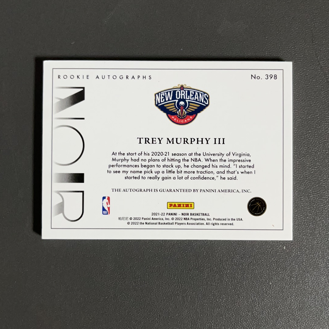 2021-22 Panini Noir Trey Murphy III RC 鹈鹕队 特雷 墨菲三世 新秀年 诺尔 侧颜 金笔卡签 39/99编 未来建队核心 投资收藏必备