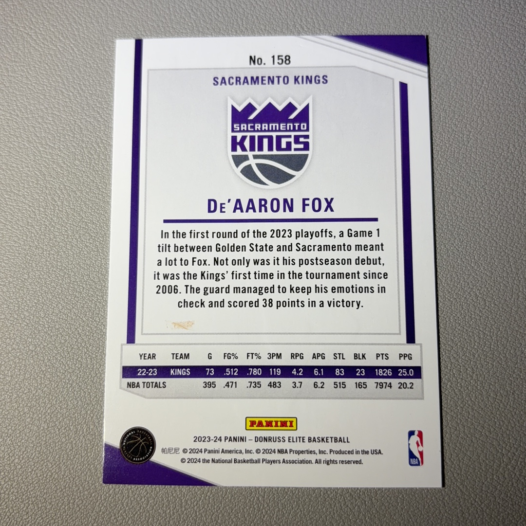 2023-24 Panini Elite De'Aaron Fox 国王 达龙 福克斯 精英 杜蕾斯 粉菱形折 折射 base 14/17编 带编 实卡精美 收藏必备 专收 凑套 卡品如图