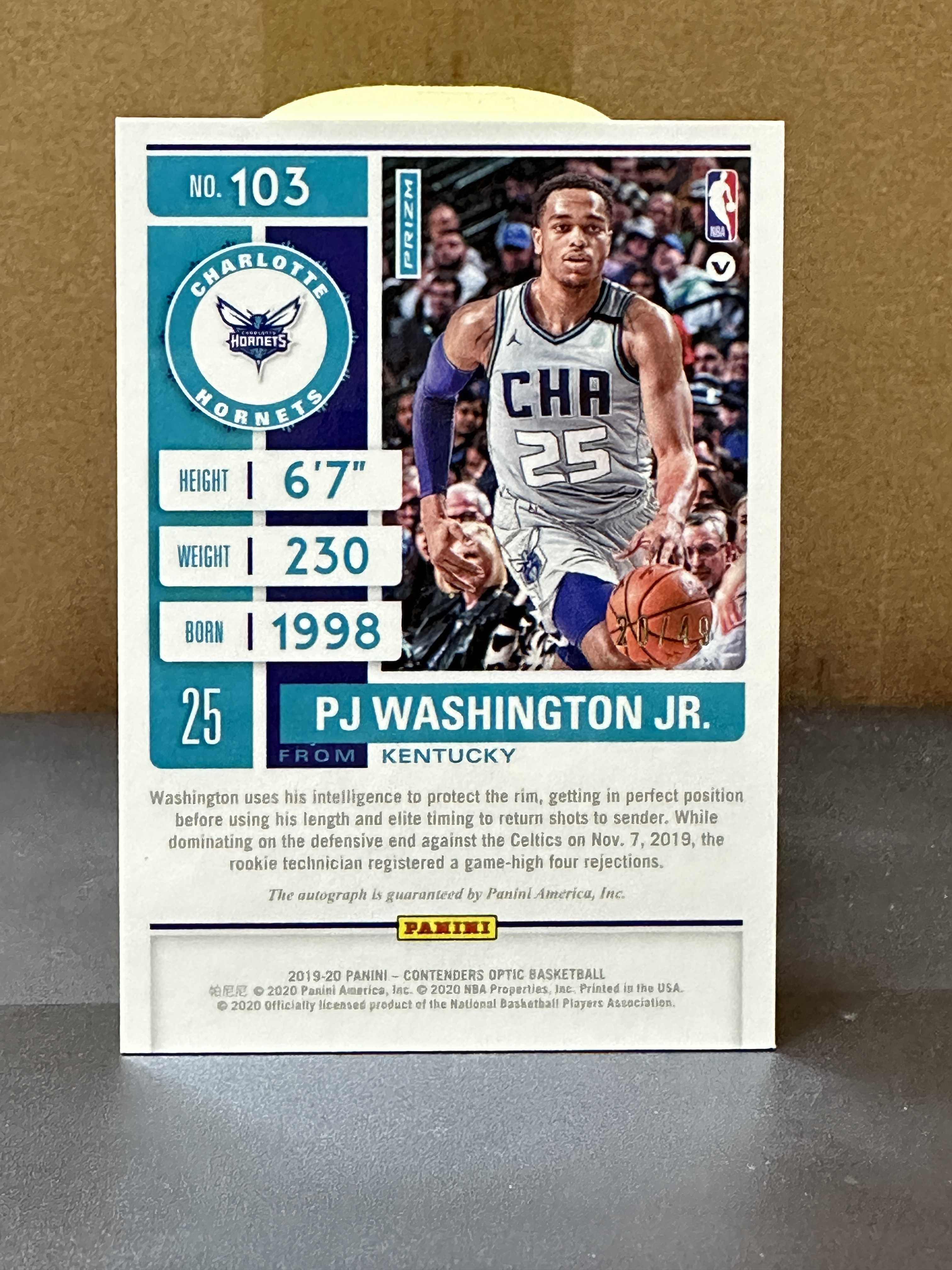 2019-20 Panini Contenders PJ Washington Jr. 黄蜂新秀 pj华盛顿 新秀球票 op 20/49蓝折 卡签 独行侠主力后卫 数据稳定 品墨如图