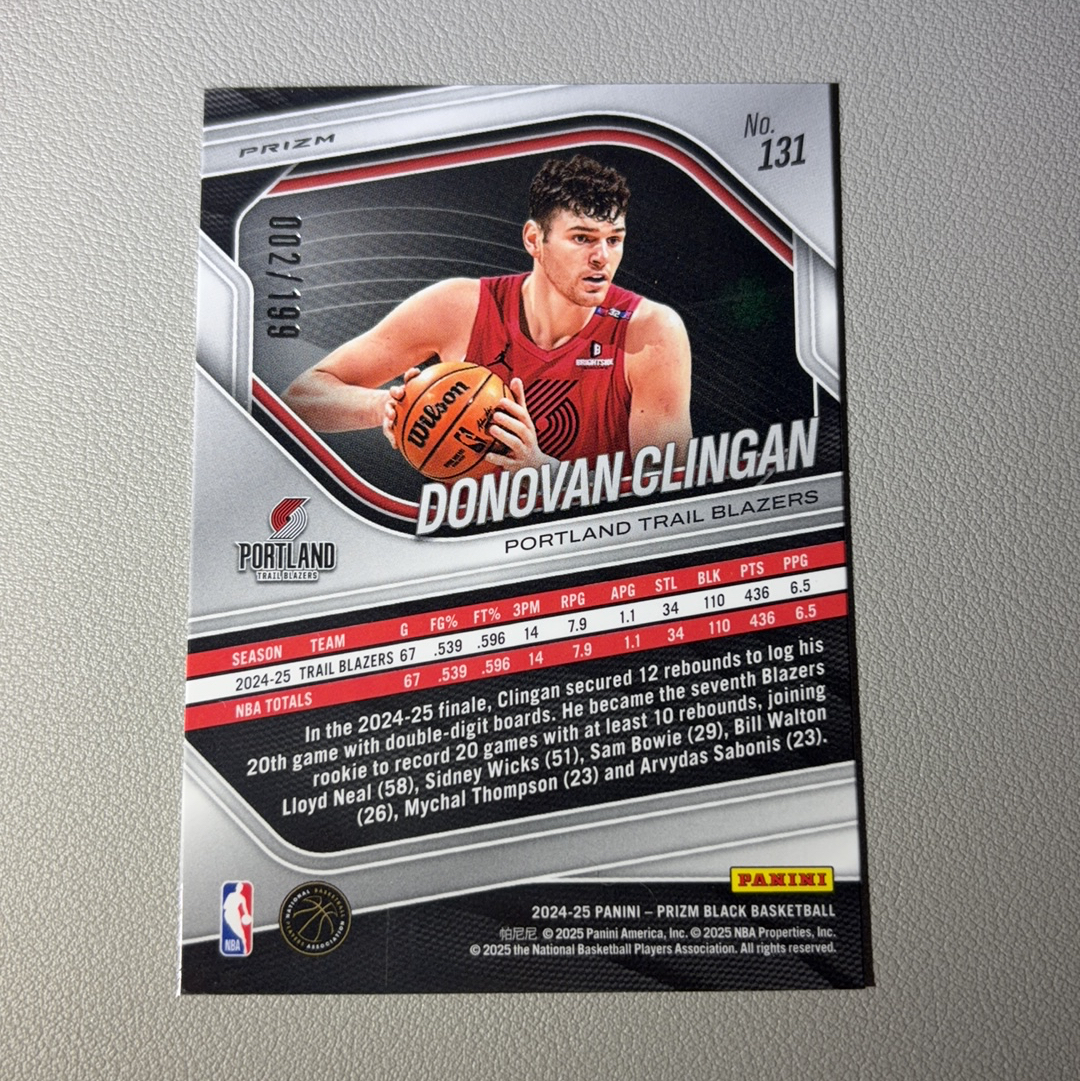 2024-25 Panini Prizm Donovan Clingan RC 开拓者 多诺万 克林根 新秀 pz base 蓝折 折射 002/199编 带编 实卡精美 收藏必备 未来可期 专收
