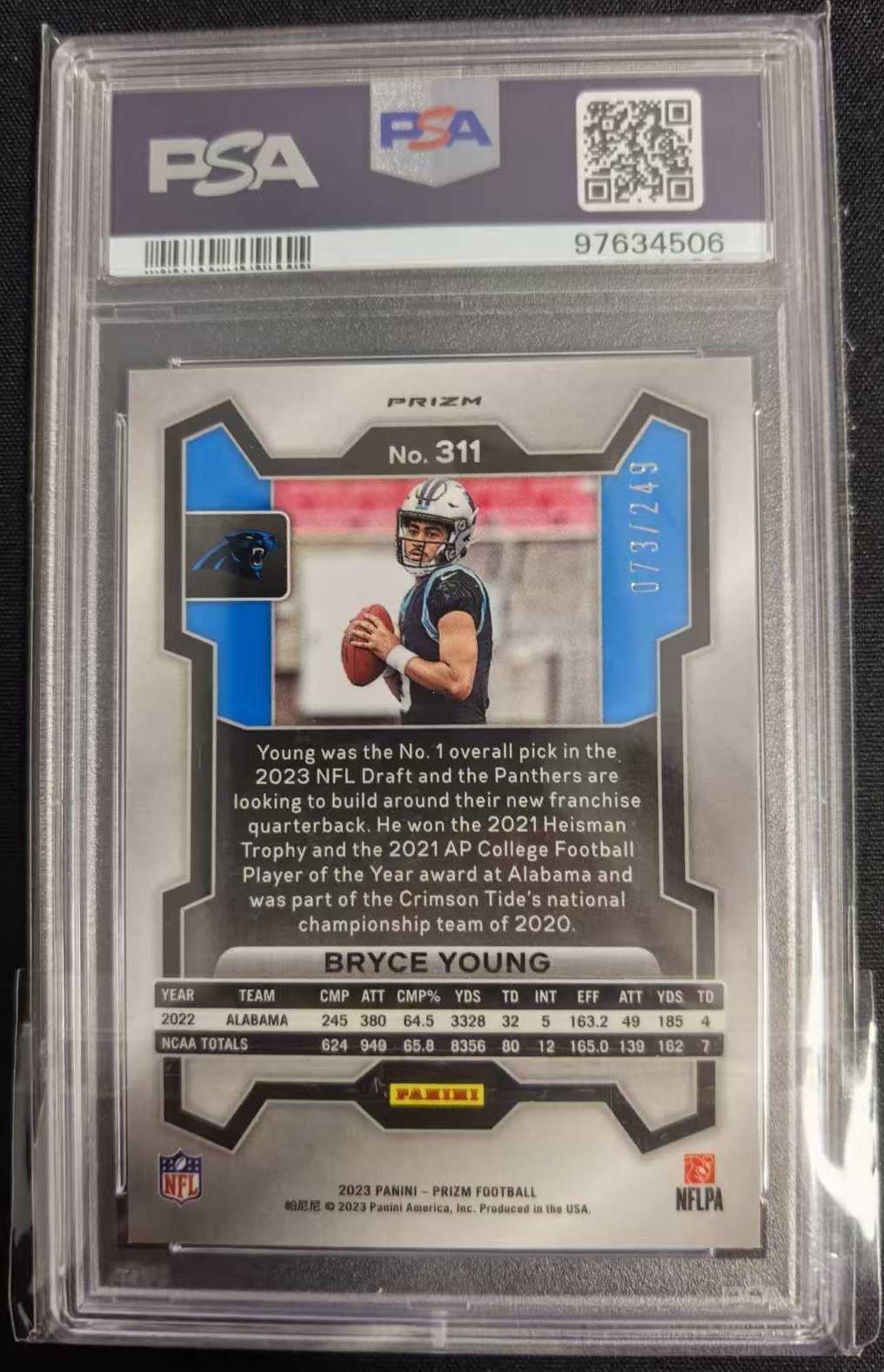 2025 Panini 【锡安代卖】 累计照常 橄榄球nfl prizm 新秀正橙折249编 卡罗莱纳黑豹状元 当家四分位 布莱斯杨 bryce young psa9 卡品如图 冲动
