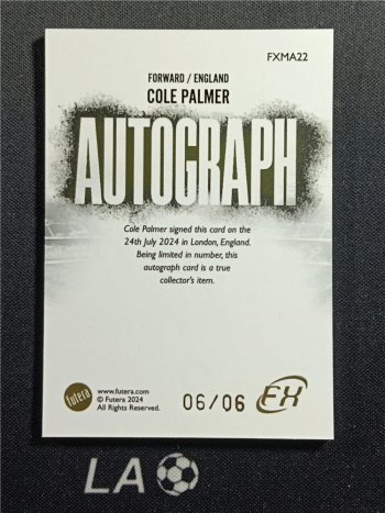 LA足球账号属于LA拍卖专注于足球的子品牌,因卡淘系统不支持跨号合并,所以分开发货计算邮费,寄售代卖咨询:laauction。卡品如图,请仔细看图,如果无图片特殊展示瑕疵均为通行品相,一般prizm optic 等系列薄卡的小划痕,国宝IMM等系列厚卡的小白边小白角,都属于通行品相。艺术家 品控勿扰。中标后请等我们合并订单再点确认付款。付款时卡淘留言说明累计或邮寄(我们会按照留言的先后顺序处理发货,请不要反复留言以免耽误给您回复)为了方便结算和卡片的累计查找,我们只合并当天的订单。邮费-顺丰(默认陆运):北京13元,非偏远外地18元,新疆西藏等偏远只发到付!超重只发到付!1000元以上的订单,建议买家自行保价,或用顺丰到付,所有快递未经保价,运输途中的损坏和丢失请于快递联系解决。(本店不支持任何普快发货,破损及丢失率太高)介意勿拍!中标可累计,累计时间2个月,每标累计金额不能超过500元,超过累计时间出现丢失或品相问题的,卡片问题由买家自行承担。累计的卡片请先付清卡款,然后卡淘上与我们联系操作,请于截标后3天转好,截标后3天未确认收到付款,一律卡淘投诉处理。